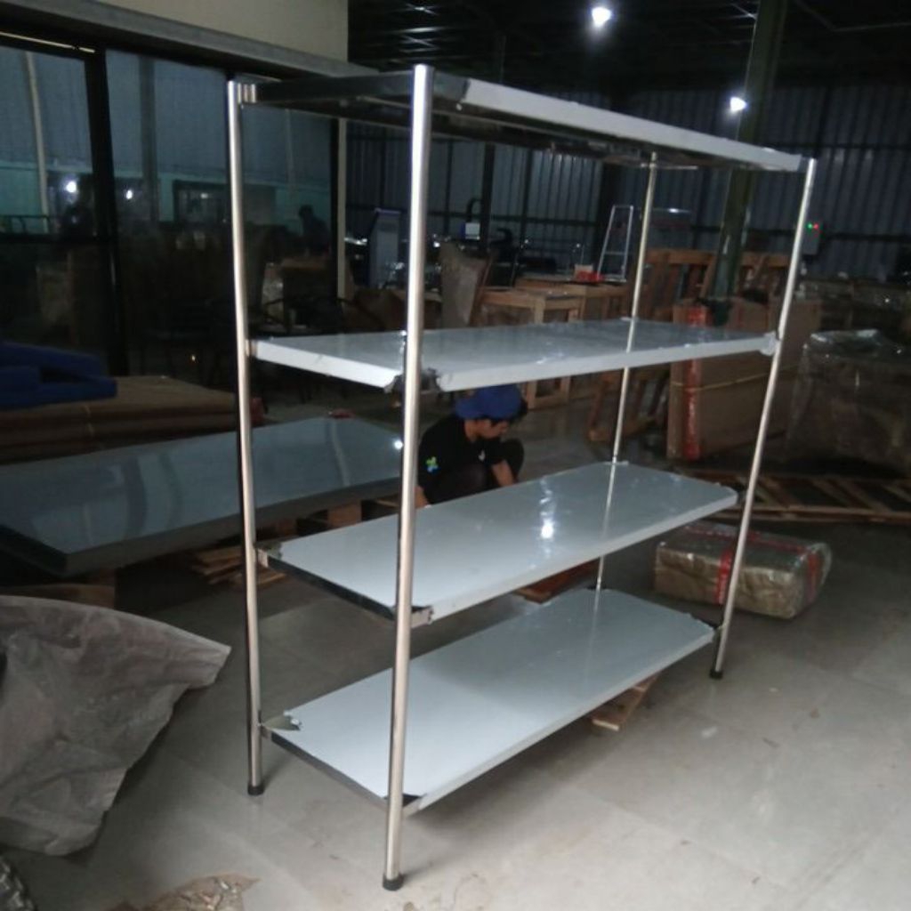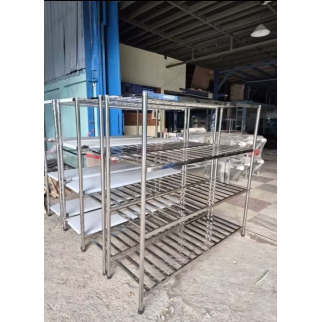 Rak solid MBG/ rak ompreng 4 susun stainless