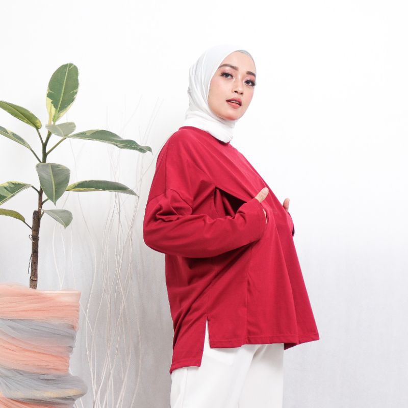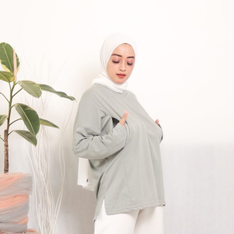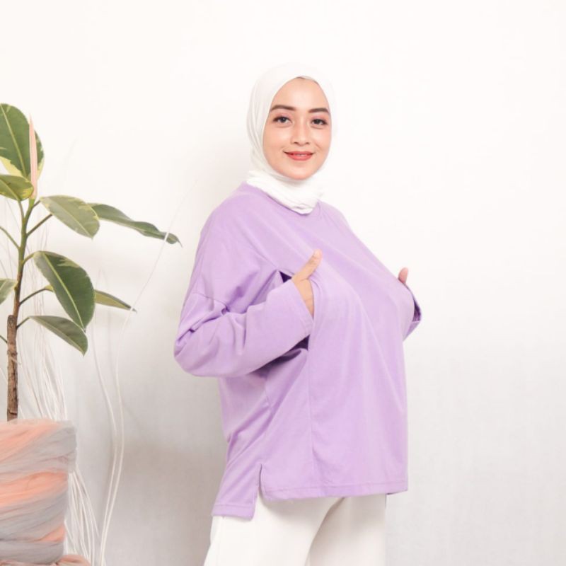 baju menyusui bahan kaos B006 / baju busui / bukaan kanan kiri motif salur bahan katun adem