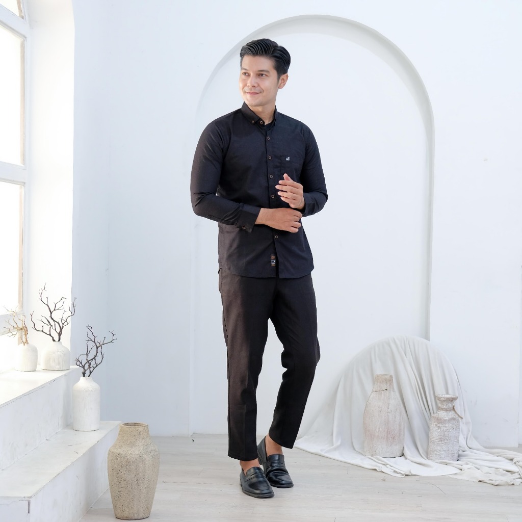 Kemeja Polos Emerald Blue Pria Lengan Panjang Casual Slimfitt Matt Katun Cigaret