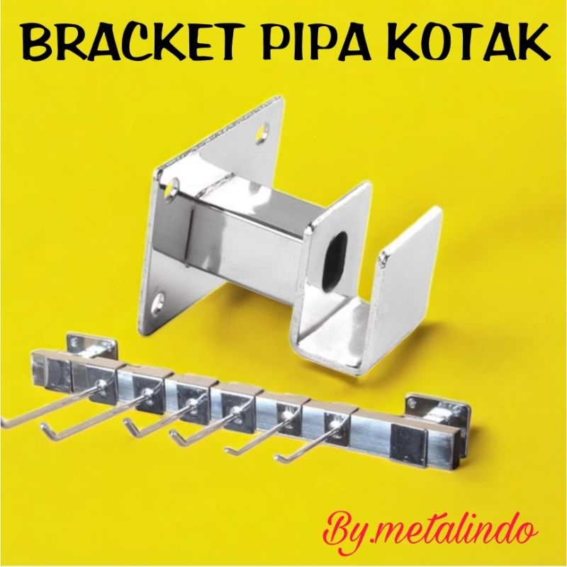 Bracket Pipa Kotak Penyangga Pipa kotak Gantungan Besi Hollo Stainles