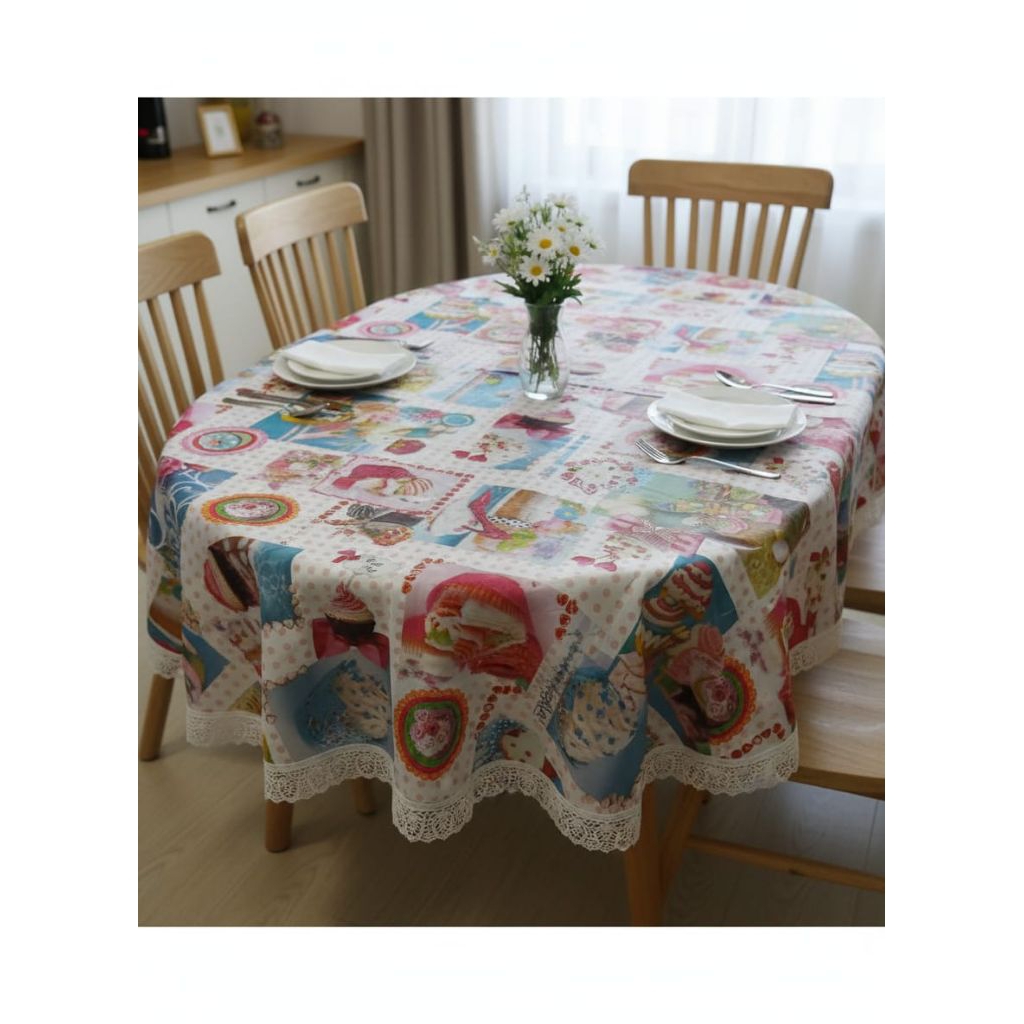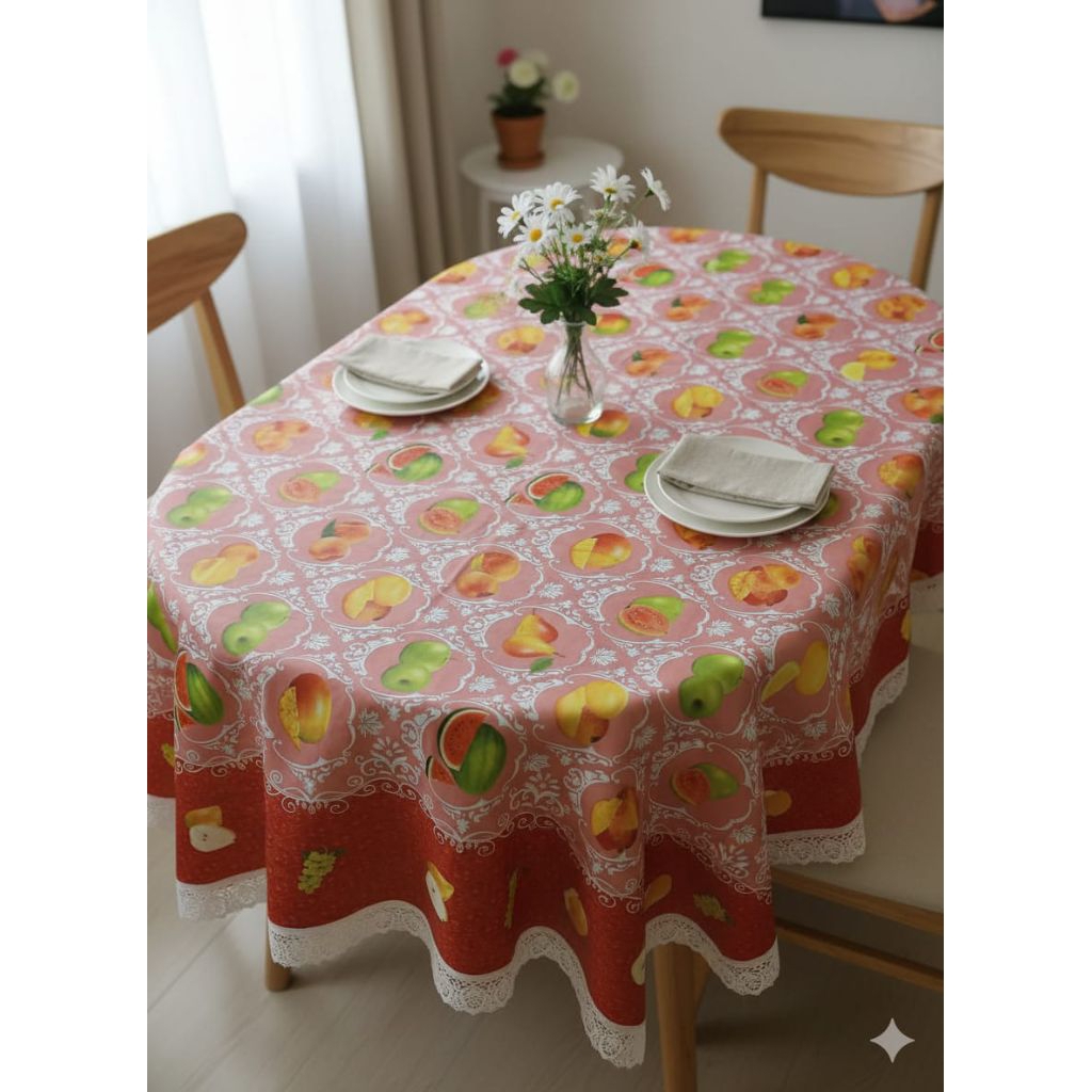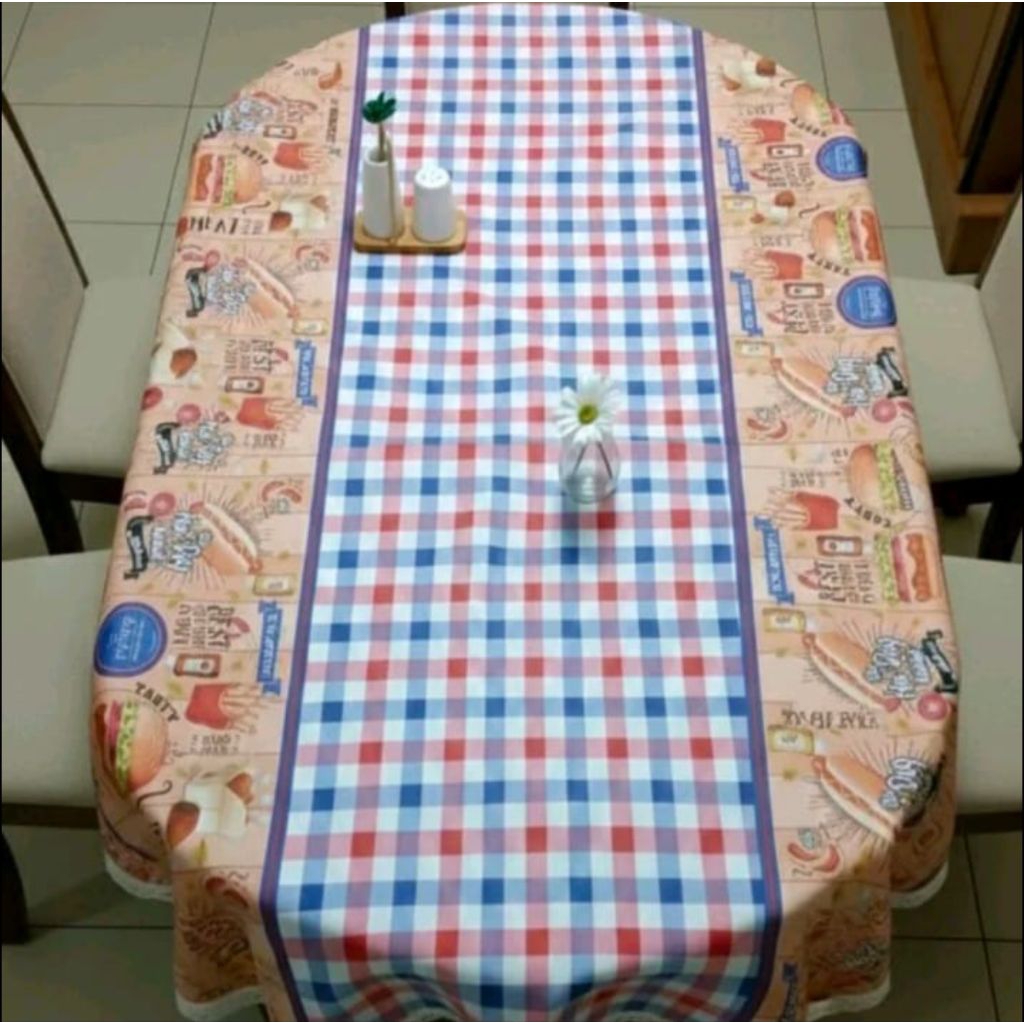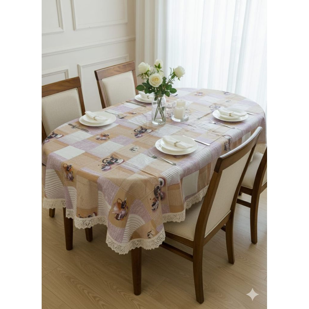 TAPLAK MEJA MAKAN OVAL/LONJONG ANTI AIR/WATERPROOF UNTUK 6-8 KURSI