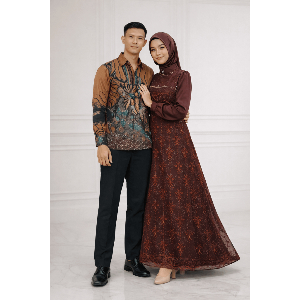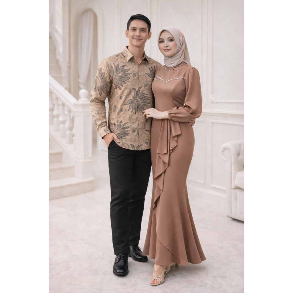 Baju Couple Lebaran 2026 Gamis Sarimbit Dress Kondangan Lamaran Pernikahan Pesta Mewah Pasangan