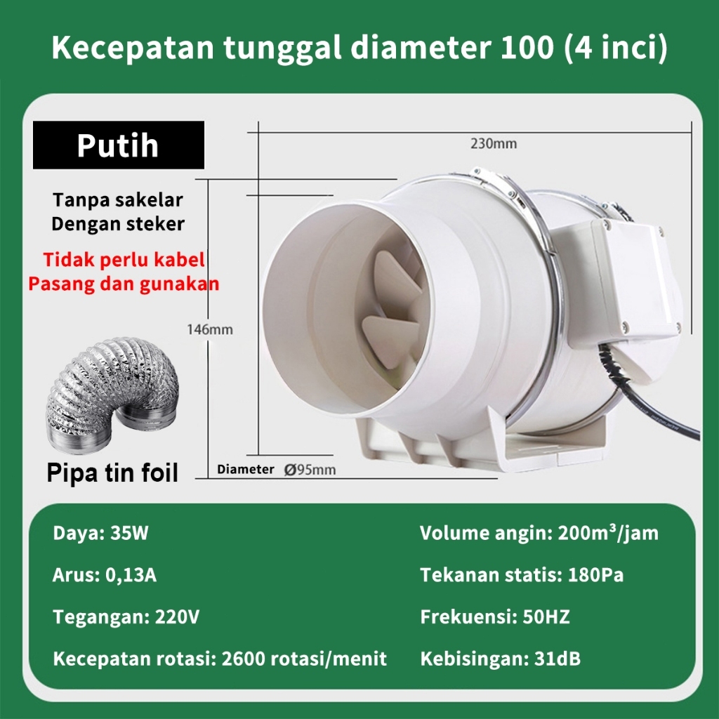 4" 5" 6" 8" Kipas Angin Buang Diam / Silent Inline Duct Booster Extractor Fan 1 & 2 Speed Kipas Ventilasi Ekstraktor Saluran Udara Air Vent Blower Dapur Toilet Kamar Mandi Single/Dual Speed Mountable Exhaust Fan