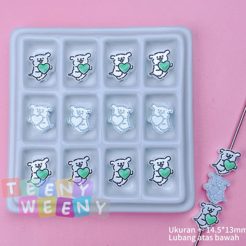 U14 1Pcs Manik Besi Metal Alloy Beads Premium Bear Beruang Love
