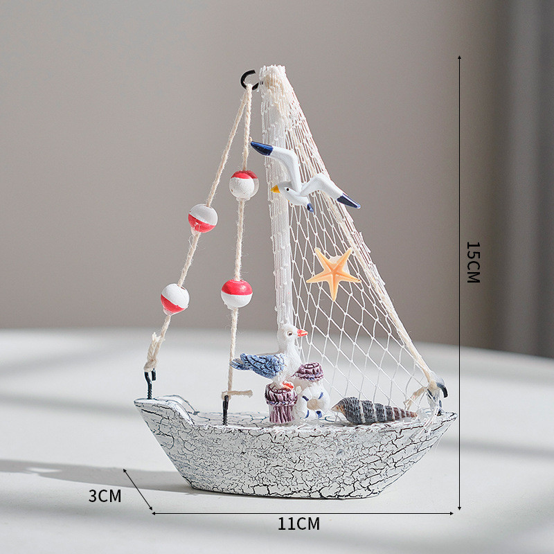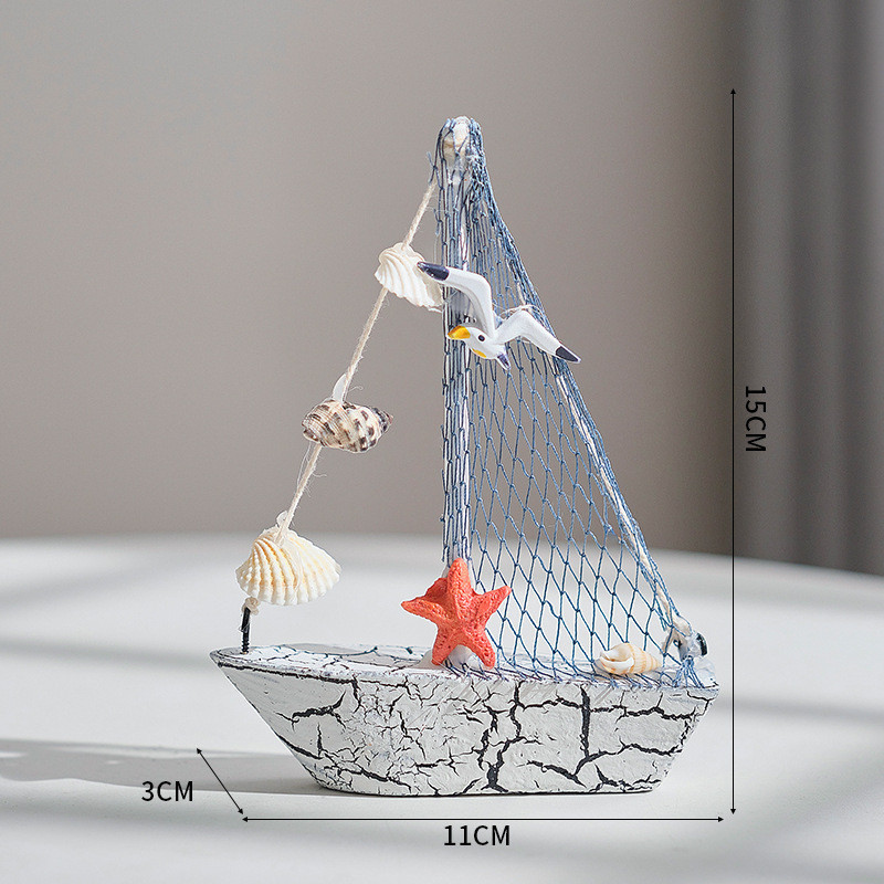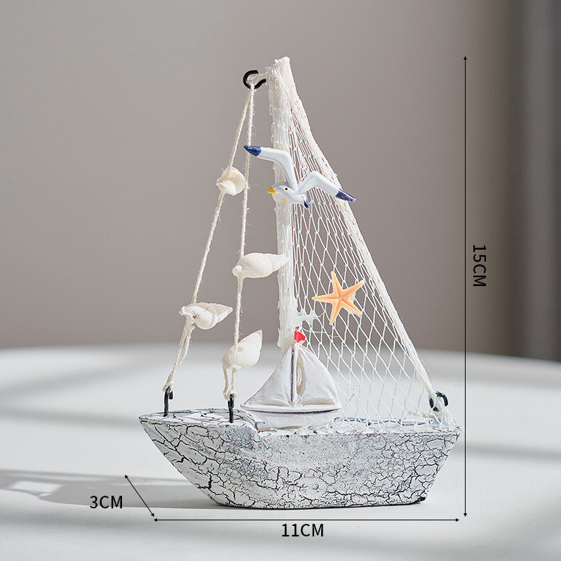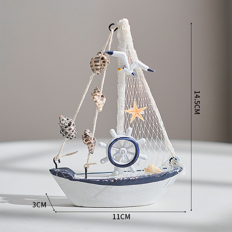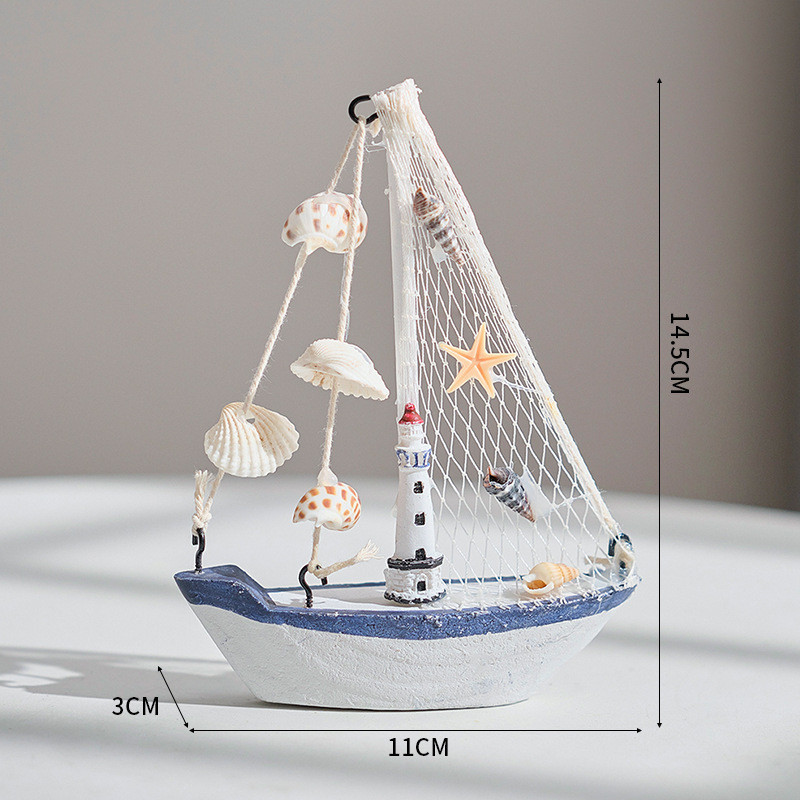 Dekorasi Perahu Kresek Cangkang Gaya Mediterania Model Berlayar Kayu Ornamen Kecil Perahu Kerajinan Kreatif Anak-anak