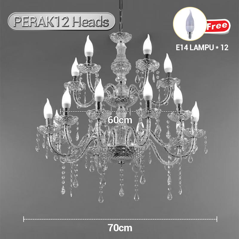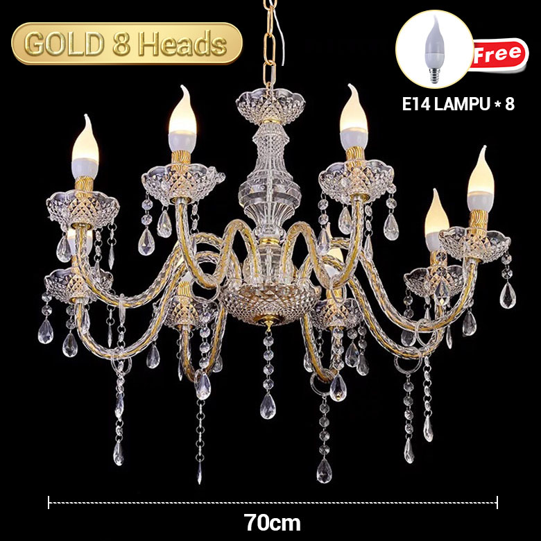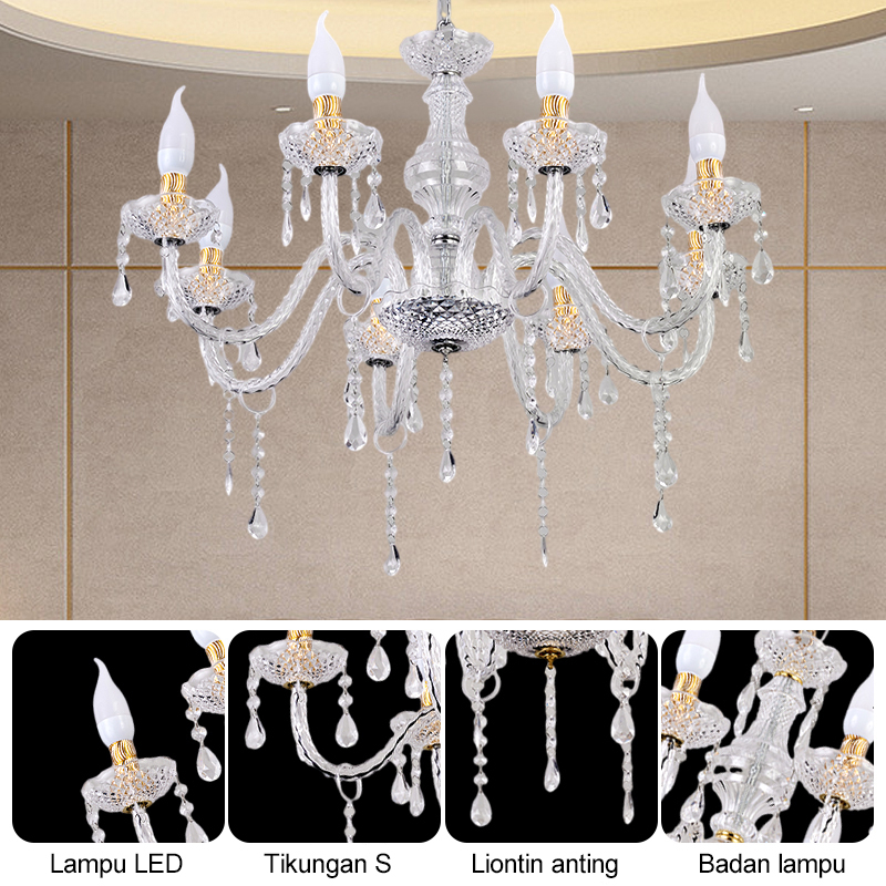 Lampu Gantung Kristal Akrilik 6/8/8+4 Lampu Chandelier Gantung Lilin Cabang / Lampu gantung Cabang 6/8/8+4 Akrilik(TERMASUK BOHLAM)