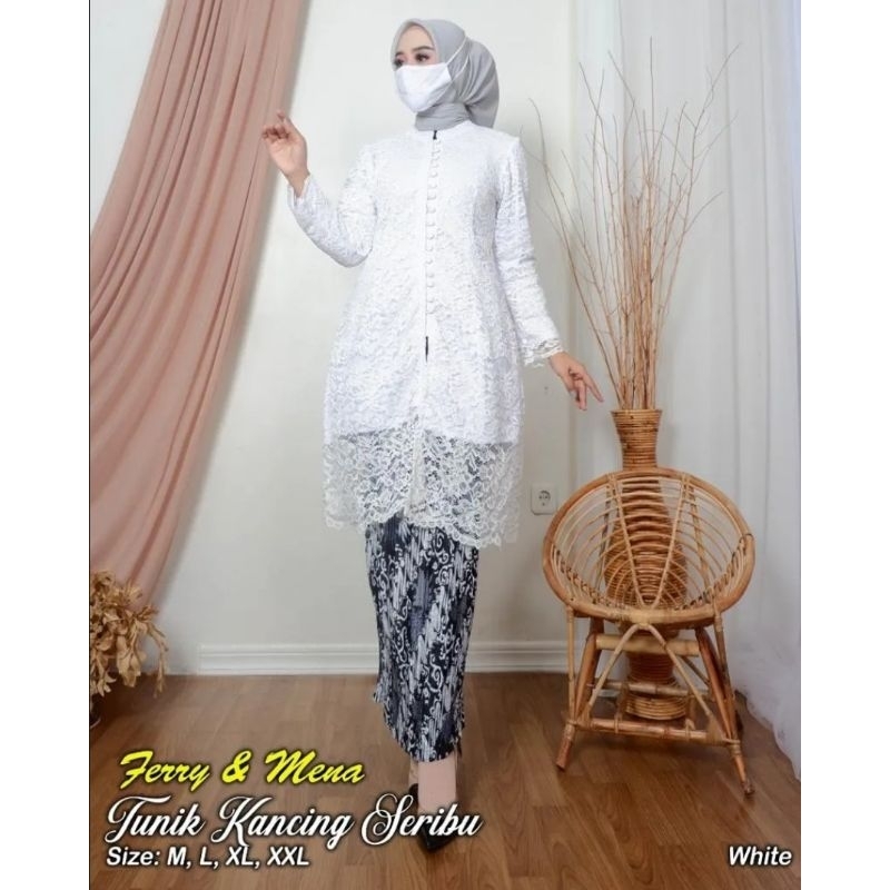 Ready Set Tunik Putih Bersih Modern//Kebaya Putih/Tunik Brukat Putih//Tunik Tille Putih/Baju Kebaya Termurah/kebaya wisuda/seragam Pesta/Set Kebaya/Pakaian wanita termurah