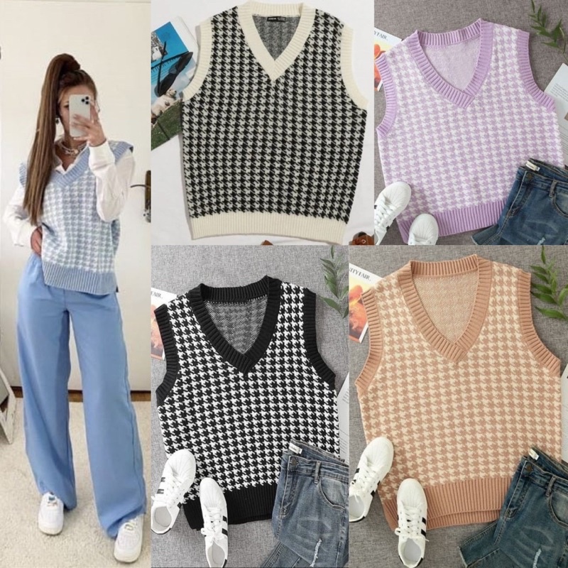 Houndstooth Vest / JENNIE Vest Rajut / TERMURAH !!!!!!!