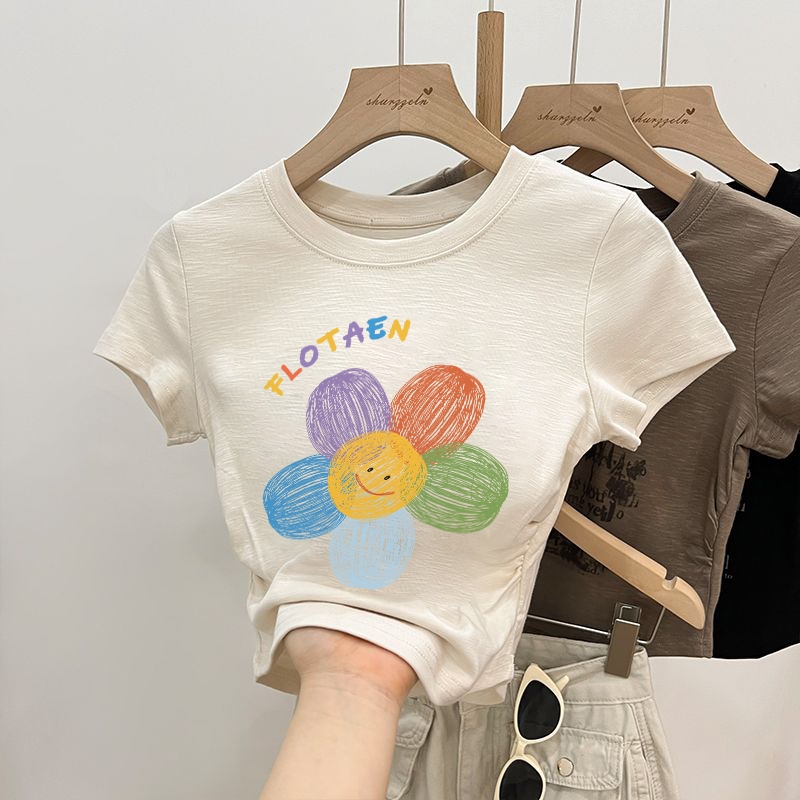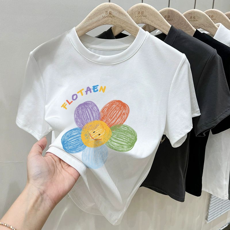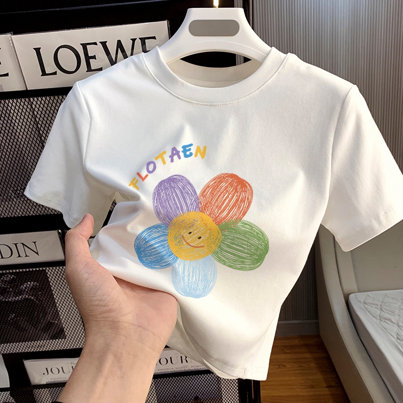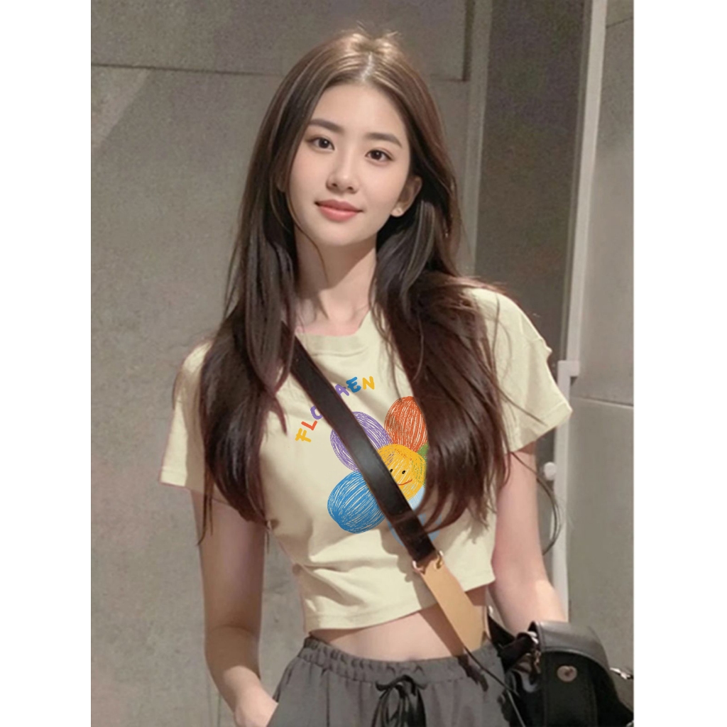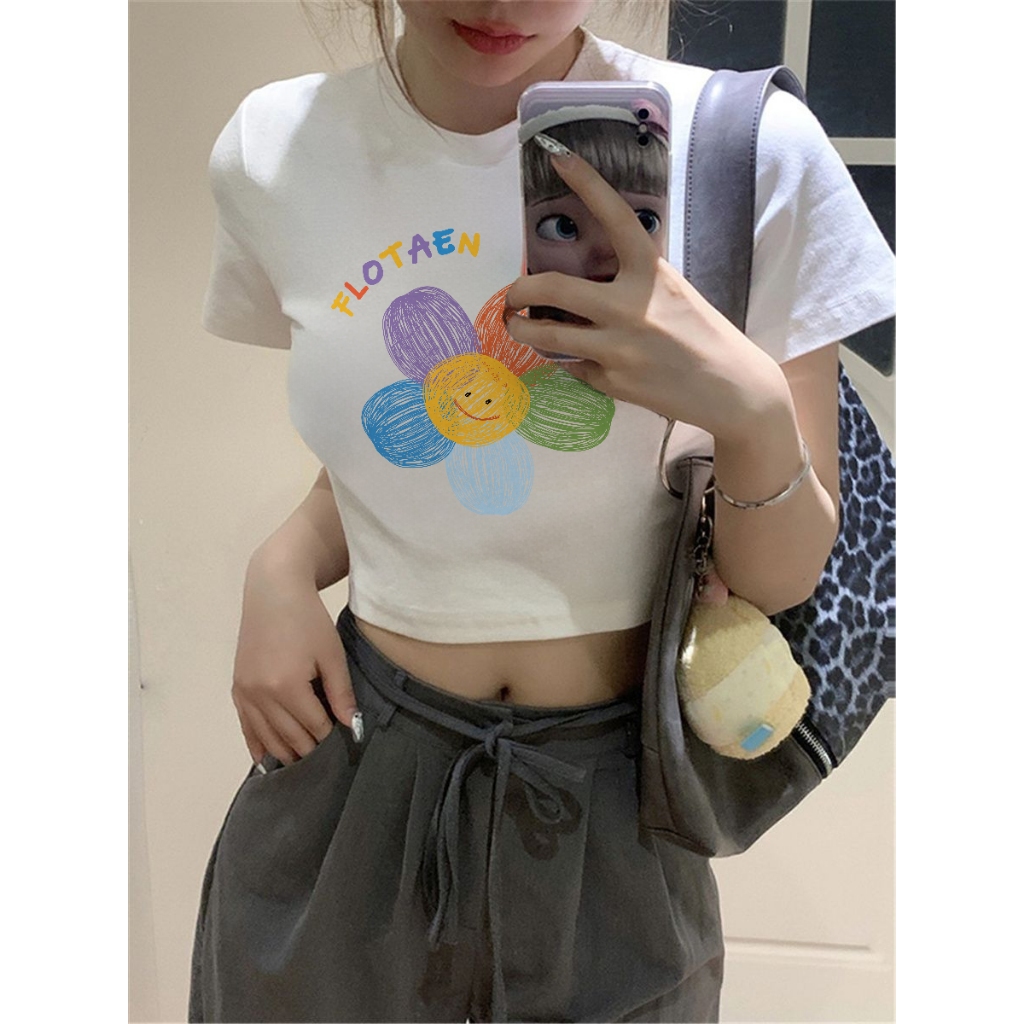 Misco. Baju Atasan Wanita Terbaru Blouse Crop T-shirt Baju Atasan Sexy Wanita Flowers Print T-shirt