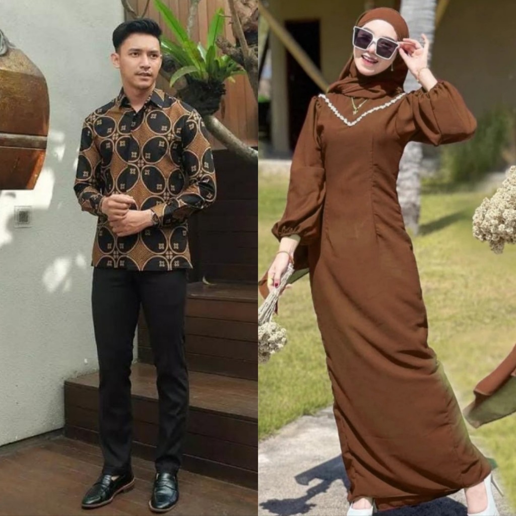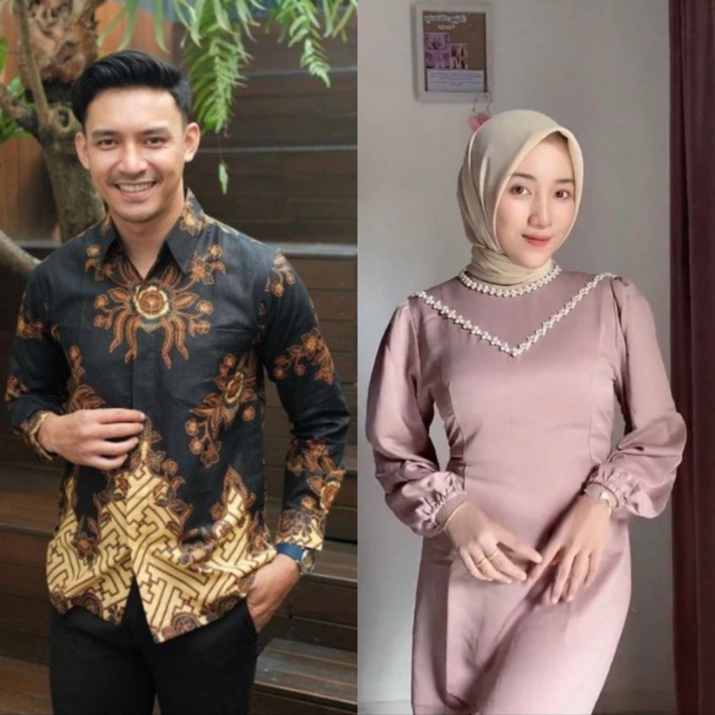 Mellisabusana - Batik Couple Dress Pasangan Dress Bridesmaid Kondangan Wisuda Premium Maxmara Full Payet Ready XXL Gamis Pesta Terbaru / Dress Wisuda Korean Style