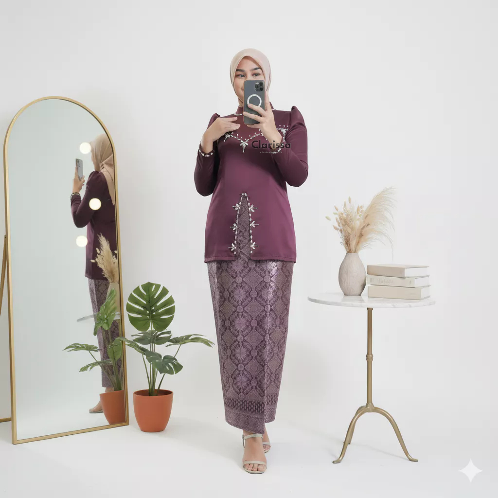 Fayra Rok Songket Oneset Baju Kurung Rok Songket Set Satin Velvet Premium || Rok Songket Satu Set Elegan