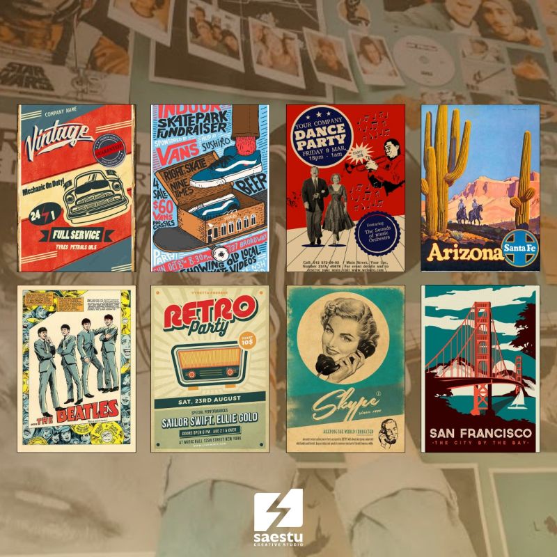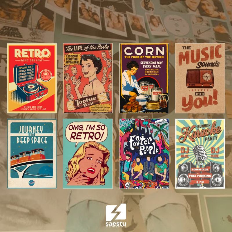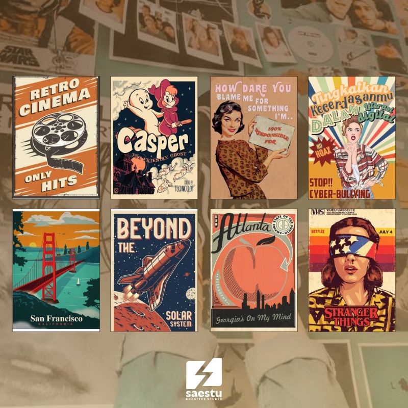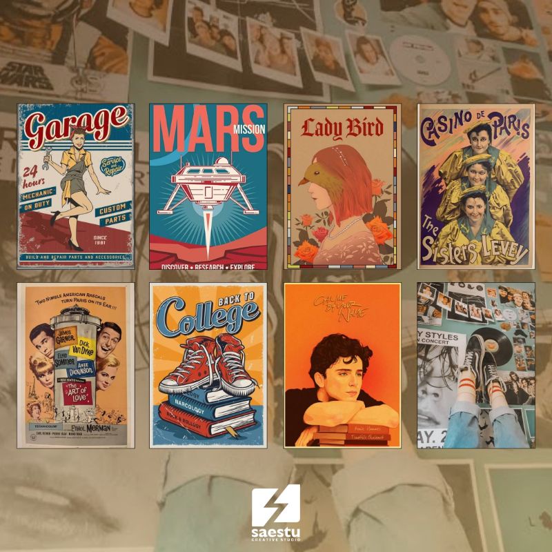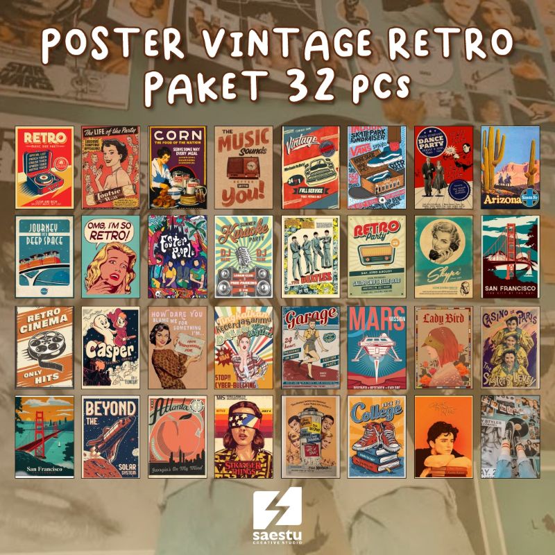 (32Pcs) Poster Aesthetic Vintage Retro Poster Dinding Kamar Vintage Retro Isi 32 pcs