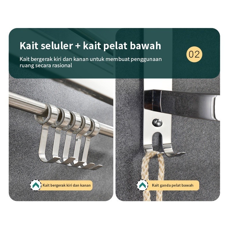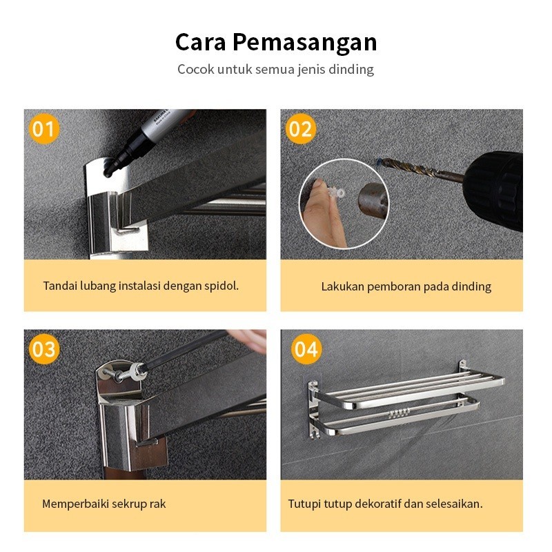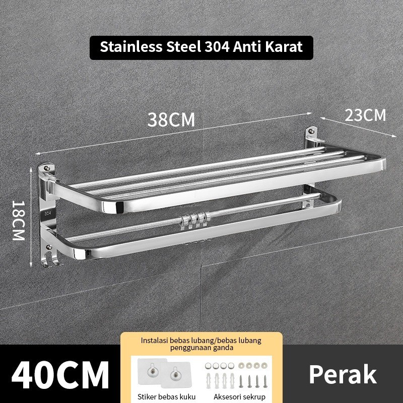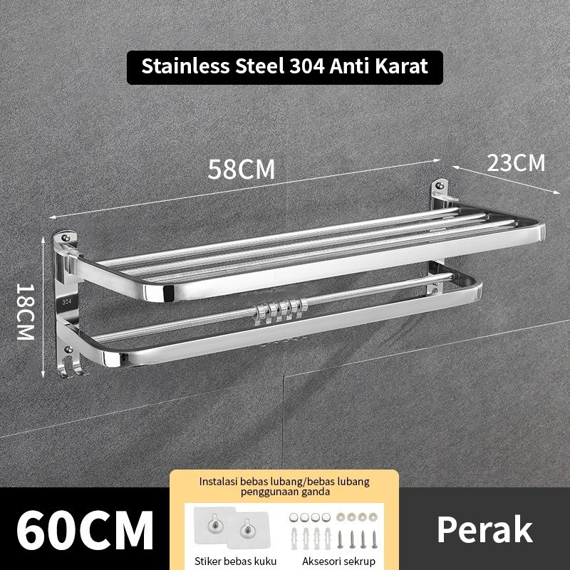 HOMIX Rak Gantung Handuk 304 Stainless Steel Rak Dinding Kamar Mandi Lipat Rak Toilet Rak Handuk Sabun Shampoo Serbaguna