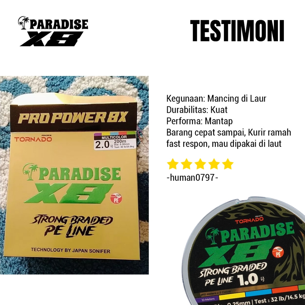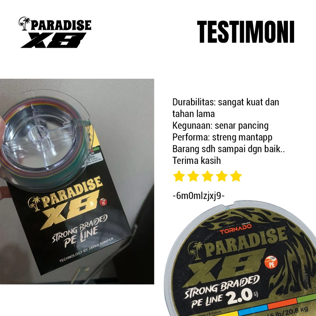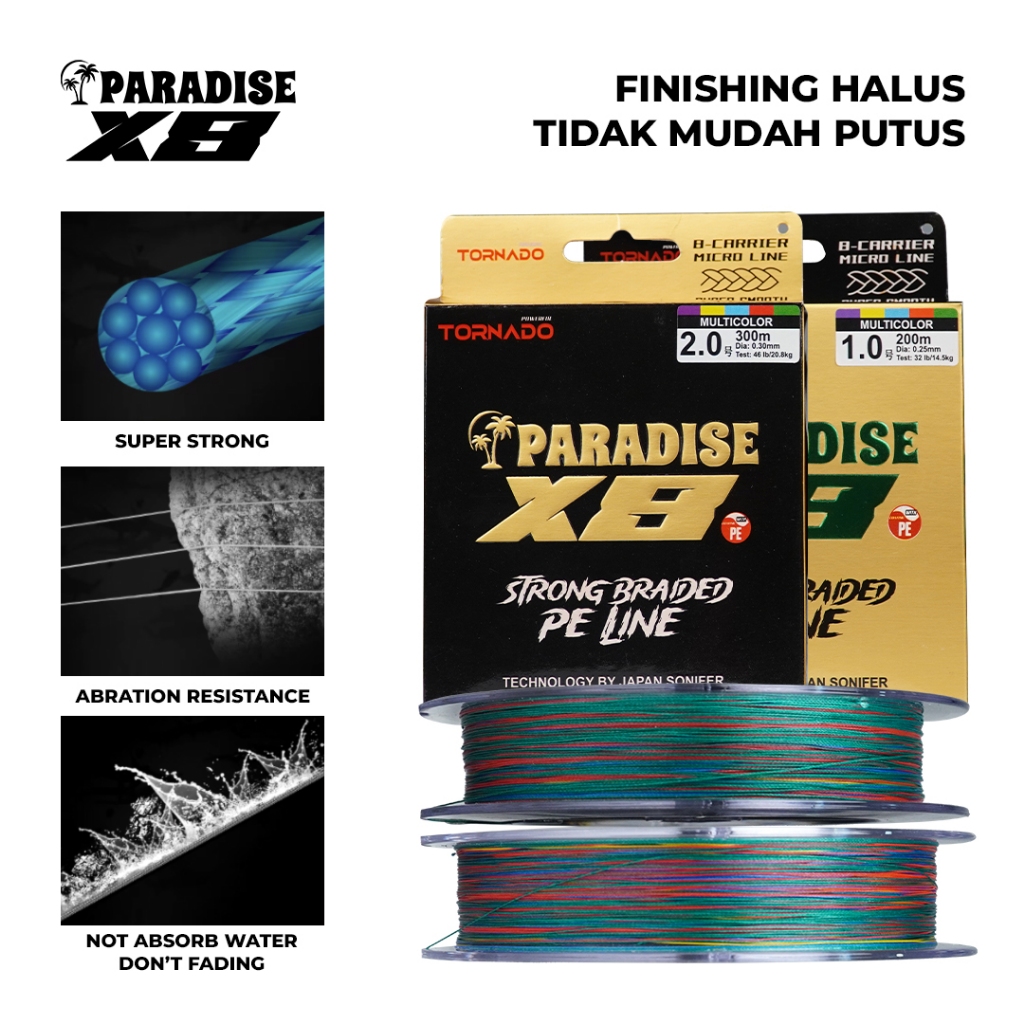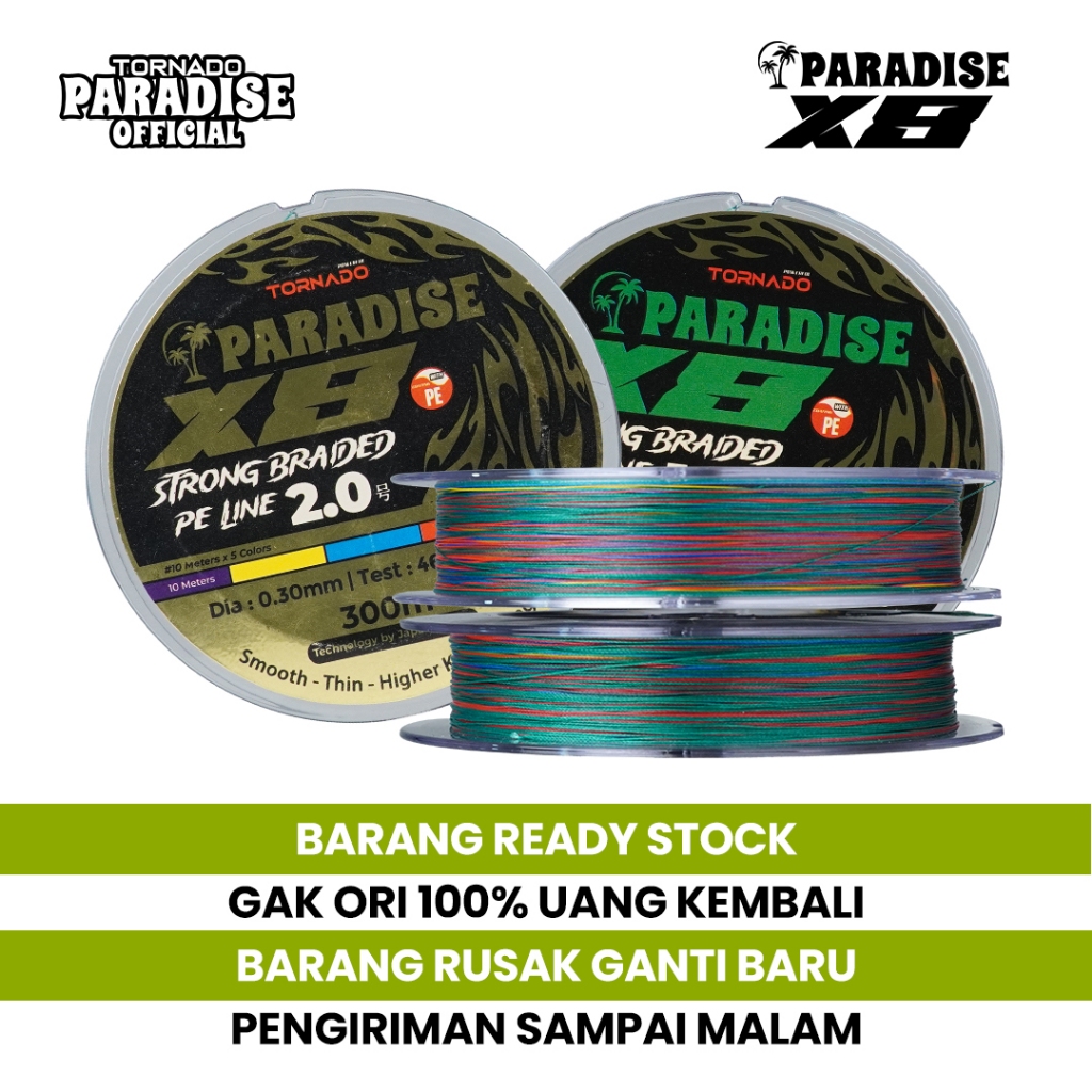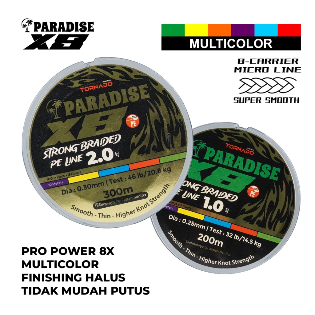 Tornado Senar Pancing Paradise PE X8 100M 200M 300M Laut Multicolor | Tidak Mudah Putus Coating