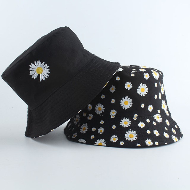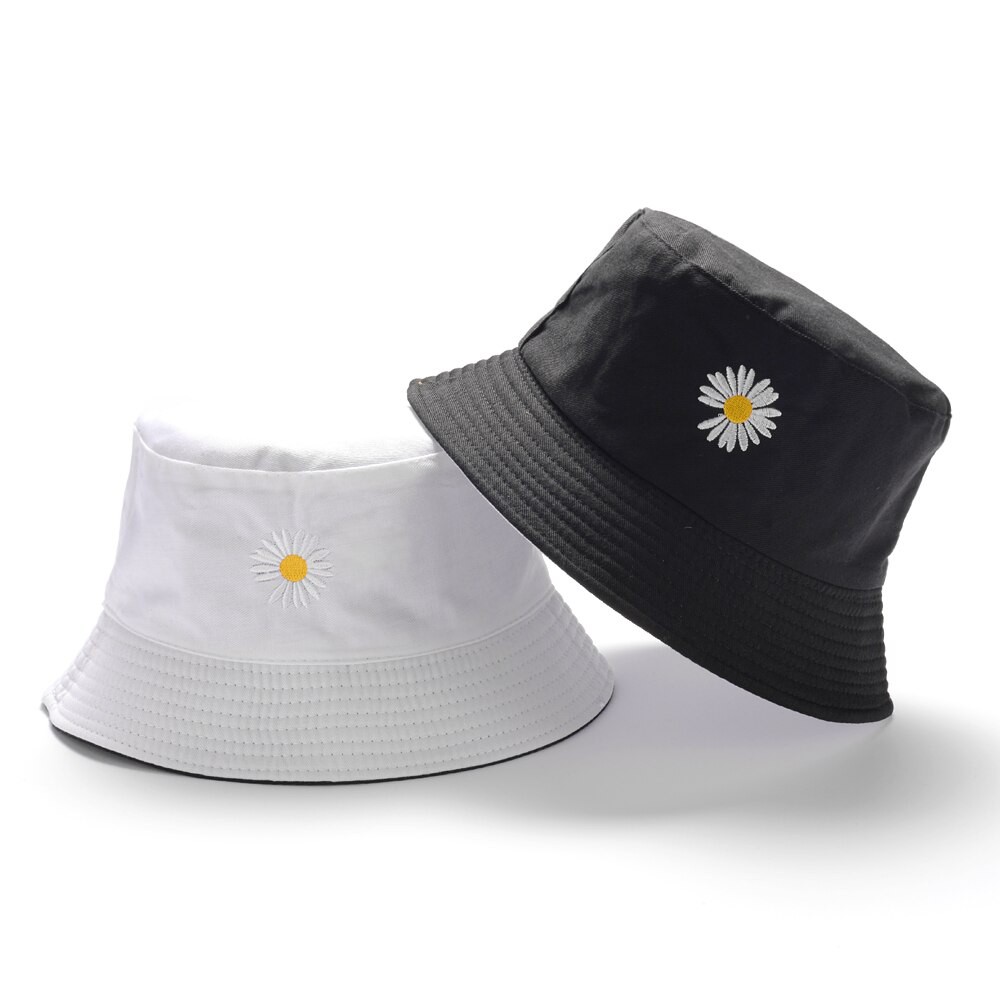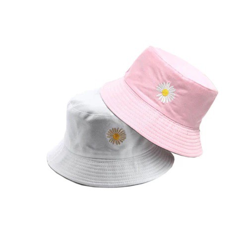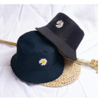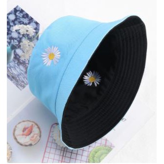 Topi Bucket Dua Sisi Anti Uv Motif Bordir Bunga Daisy Bahan Katun Twill / Bucket Bordir Bunga