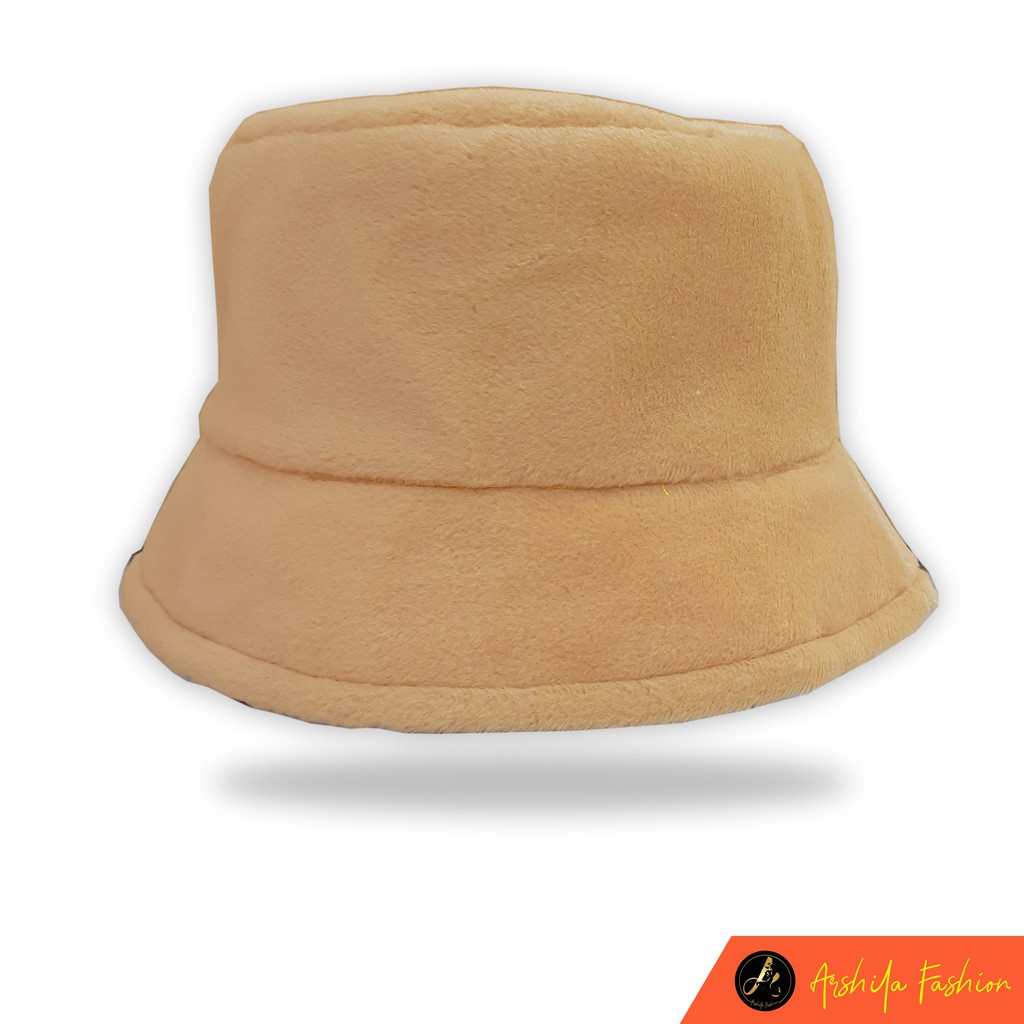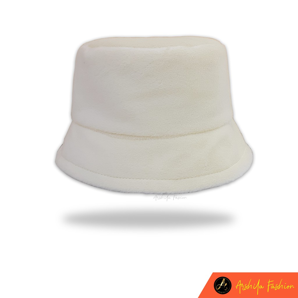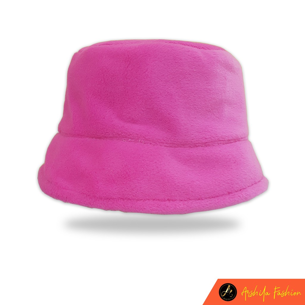 Topi Bucket Wanita Bahan Bulu Lembut Hangat Motif Polos by
