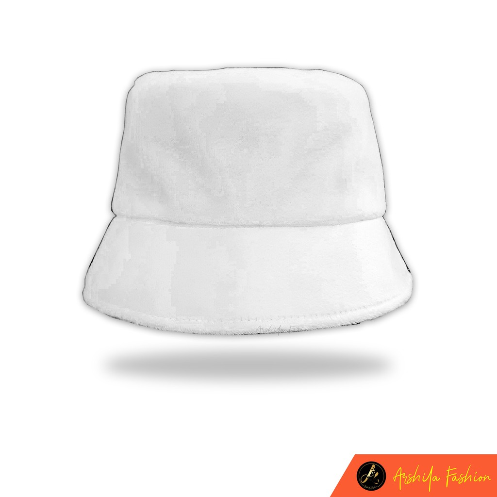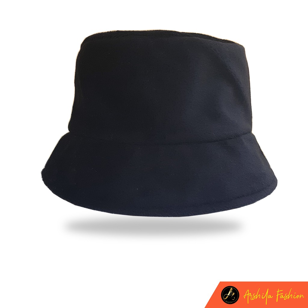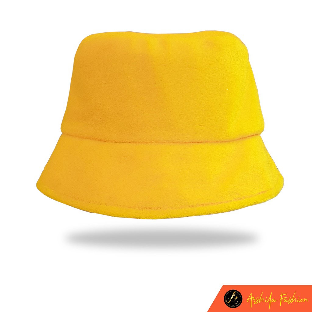 Topi Bucket Wanita Bahan Bulu Lembut Hangat Motif Polos by