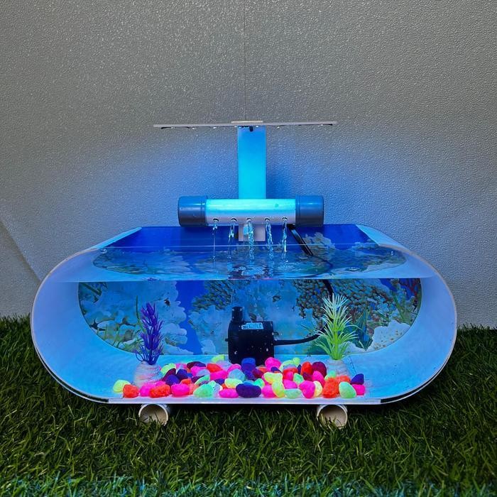 Akuarium Mini Background Transparan Fullset Ukuran 30X11,5Cm Akrilik Aquarium Aquascape Full Set Paludarium Original Dan Terpercaya