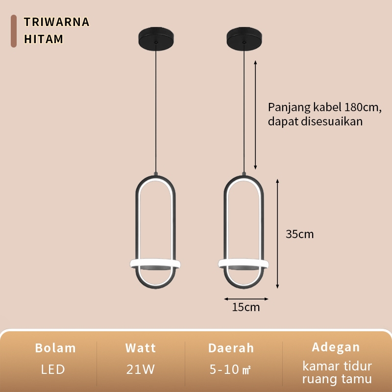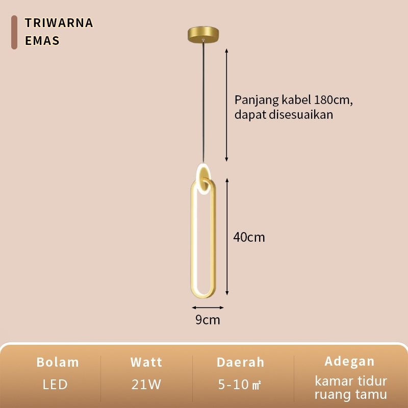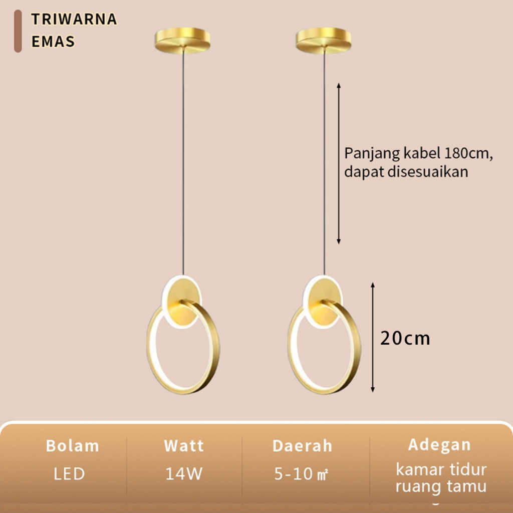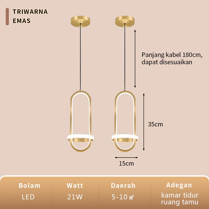 Lampu Gantung Samping Tempat Tidur Kamar Tidur Mewah Lampu Hias Ruang Tamu Minimalis Lampu Gantung LED 3 Warna