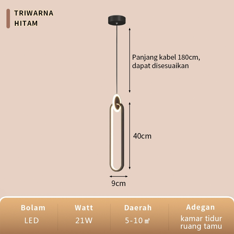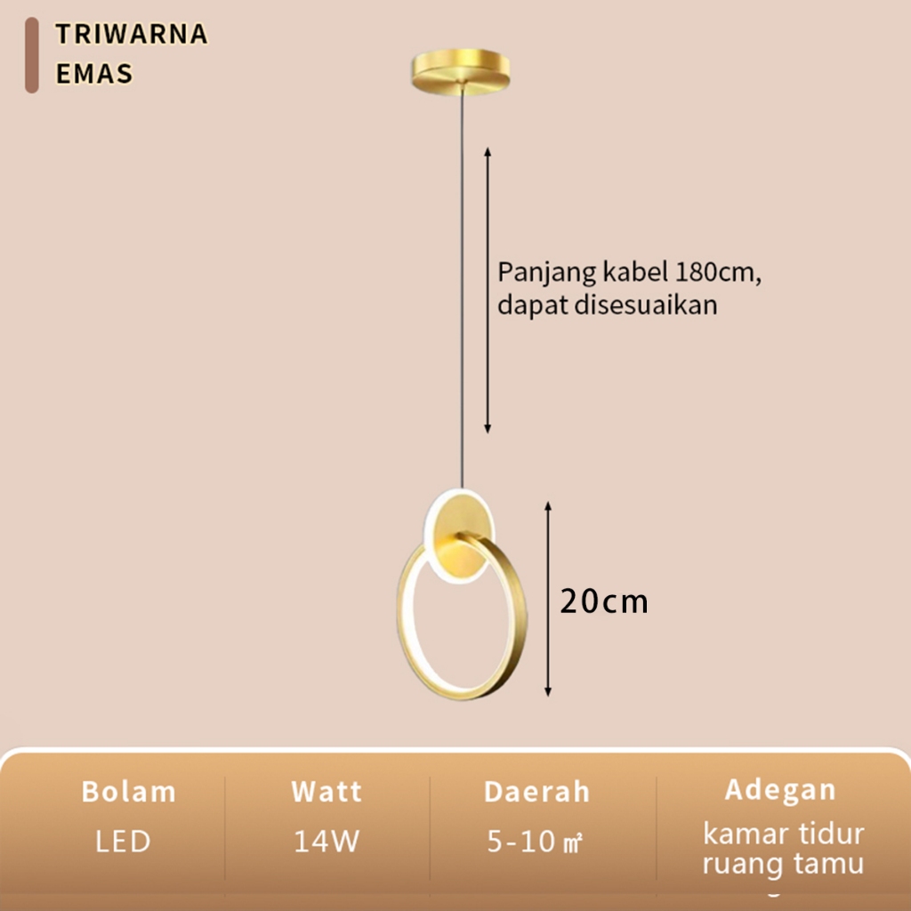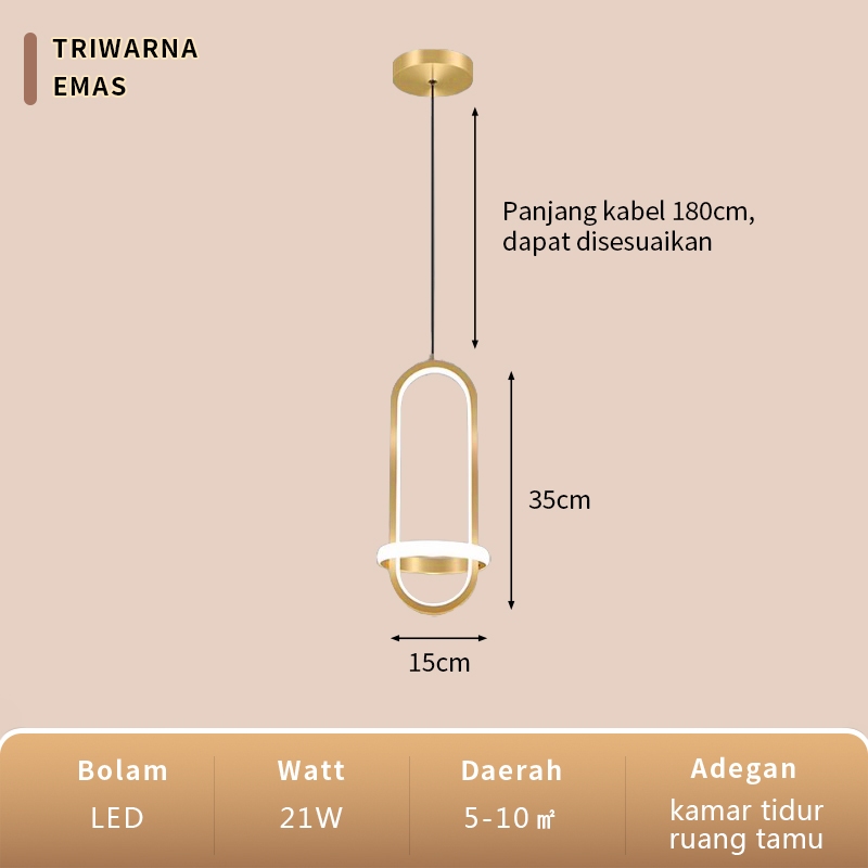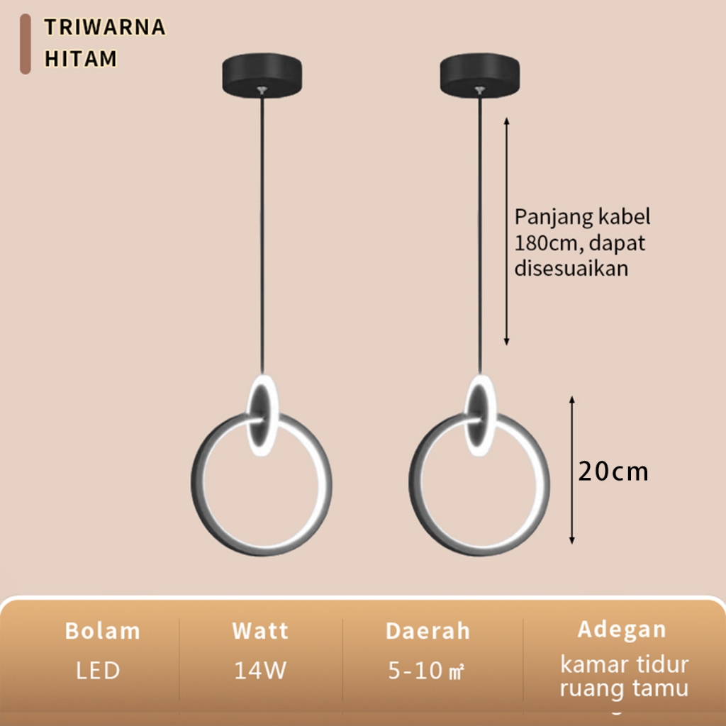 Lampu Gantung Samping Tempat Tidur Kamar Tidur Mewah Lampu Hias Ruang Tamu Minimalis Lampu Gantung LED 3 Warna