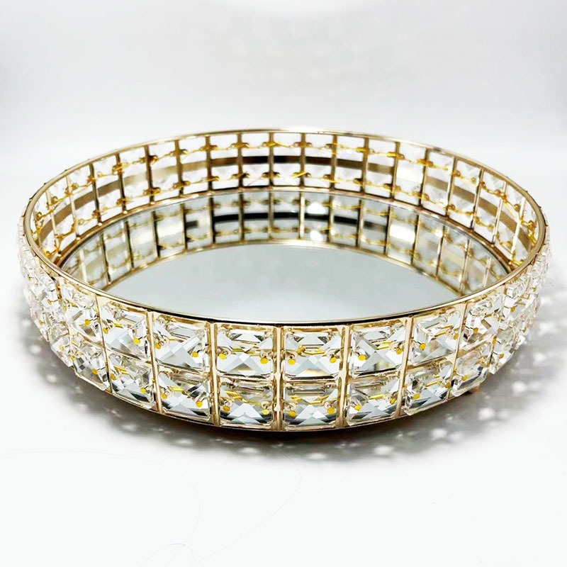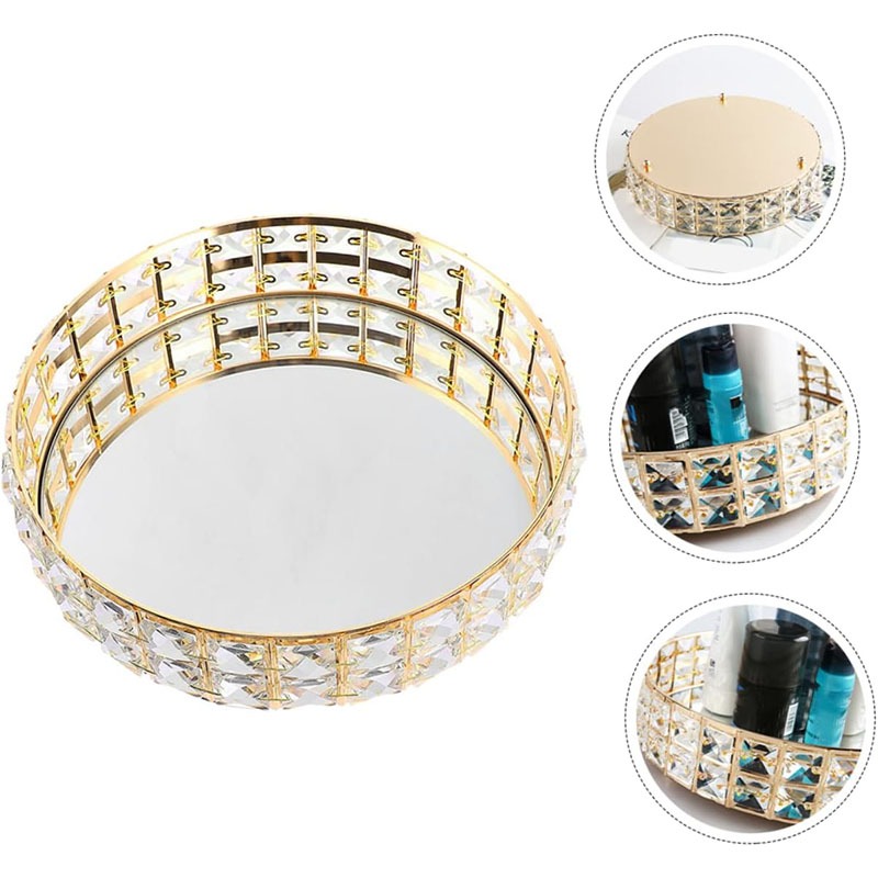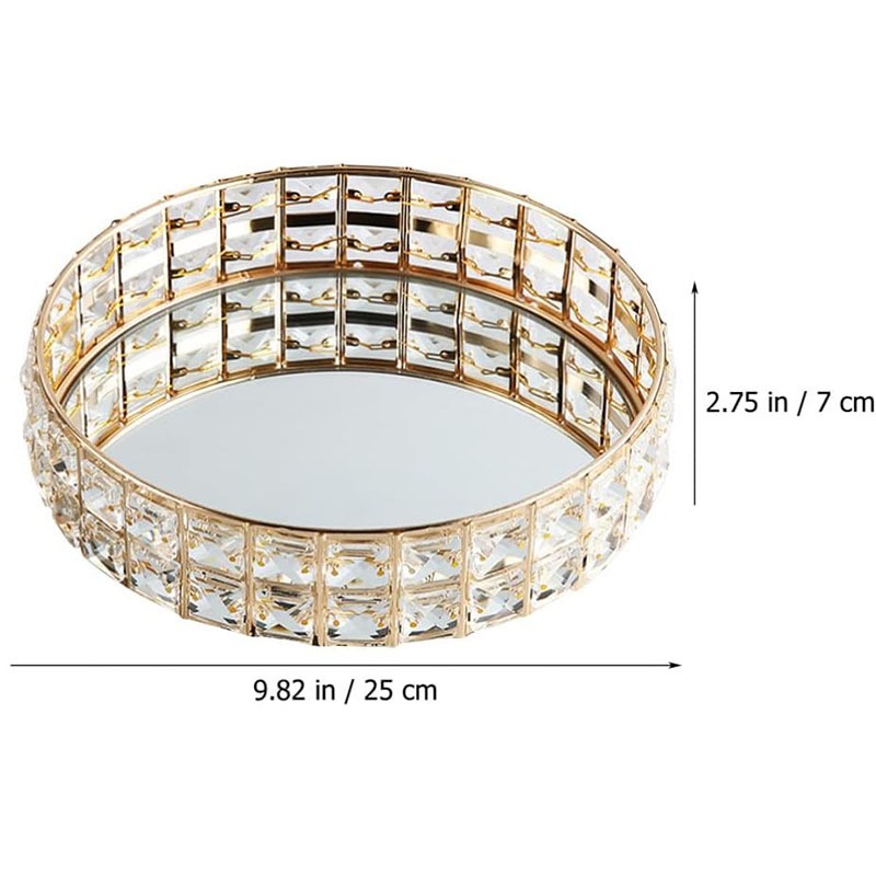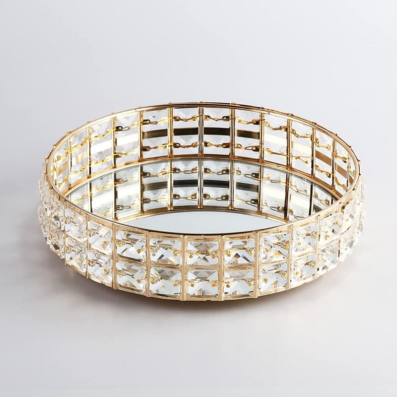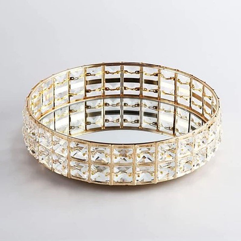Baki Tempat Perhiasan Bulat Kristal Europe Gold Tray Baki Nampan Seserahan Hantaran Pernikahan Home Decoration