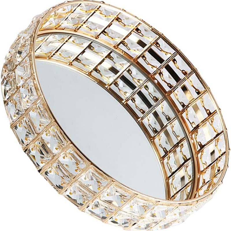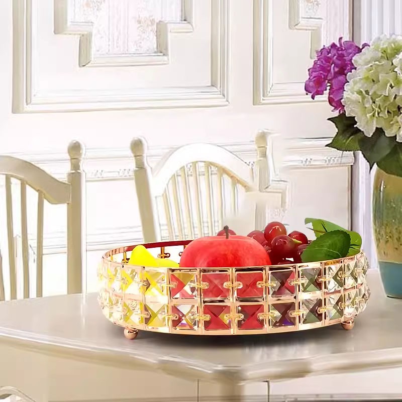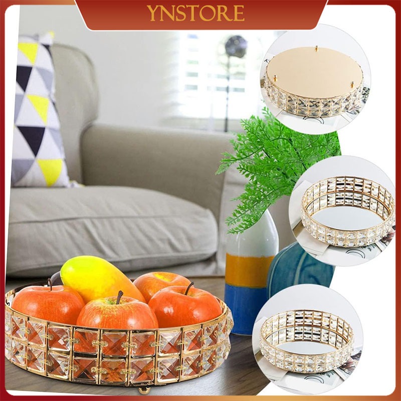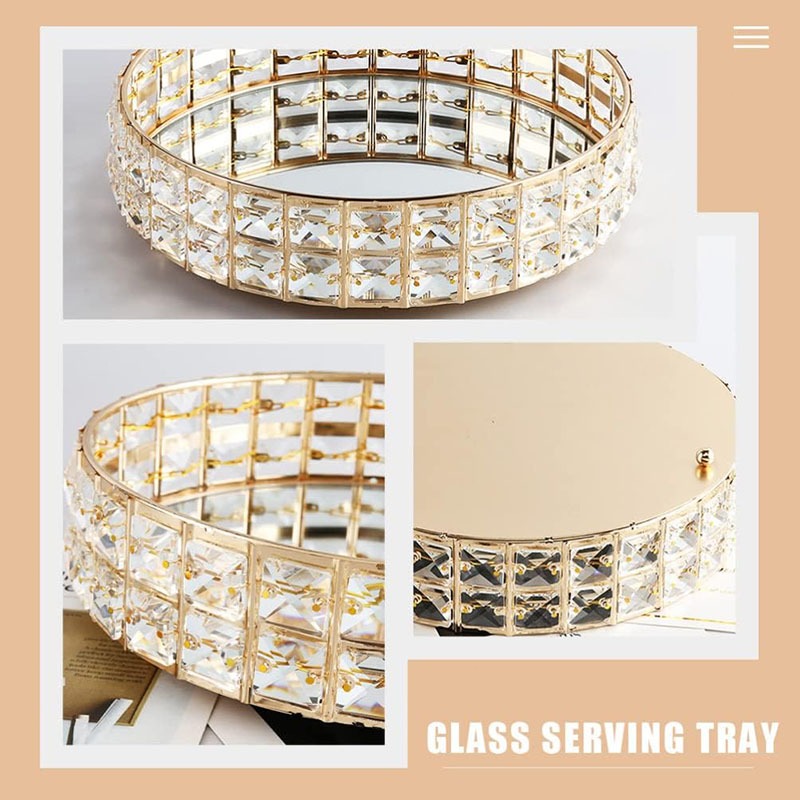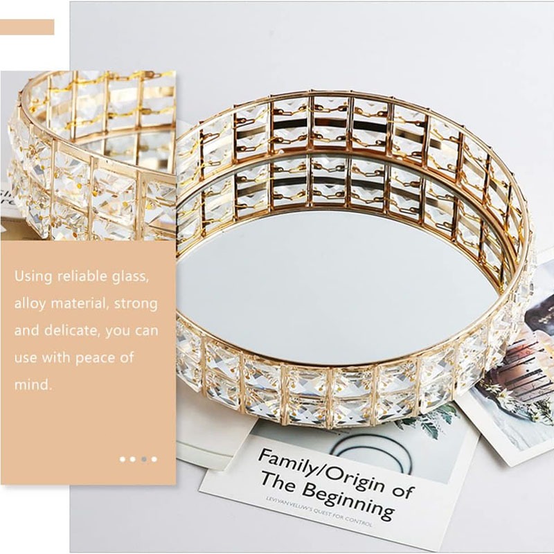 Baki Tempat Perhiasan Bulat Kristal Europe Gold Tray Baki Nampan Seserahan Hantaran Pernikahan Home Decoration