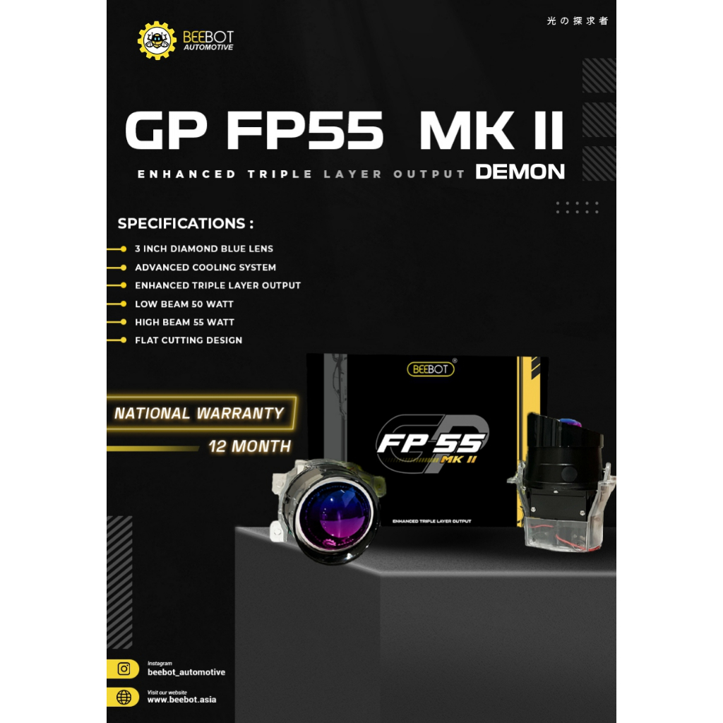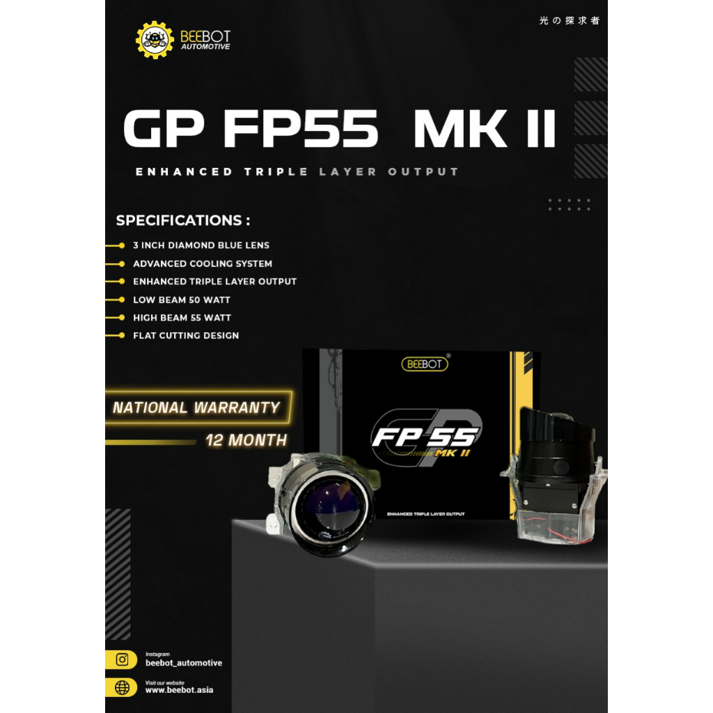 BEEBOT BILED FOGLAMP PROJECTOR 3inch - GP FP55 MK II 1 WARNA 50-55WATT