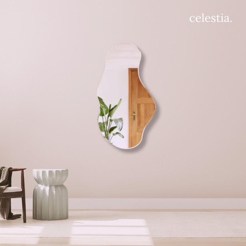 Cermin Aesthetic Kaca Dinding Tempel Dekorasi Kamar Gantung Scandinavian Mirror Wastafel Make Up Kamar Mandi Free Packing