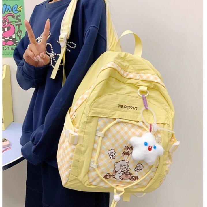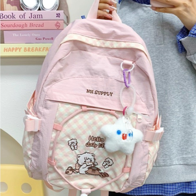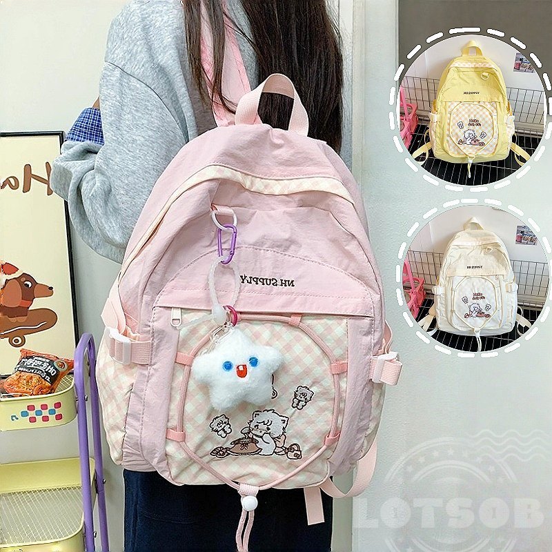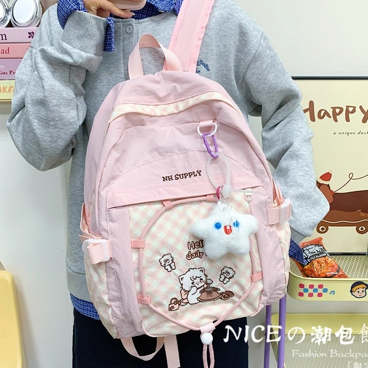 (COD)Tas Sekolah wanita Pink Lucu Anak Siswa Perempuan Tas Ransel Korean Style Laptop Tas Ransel Fashion Volume Tinggi Tas Ransel Ins Siswa Wanita Backpack