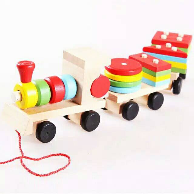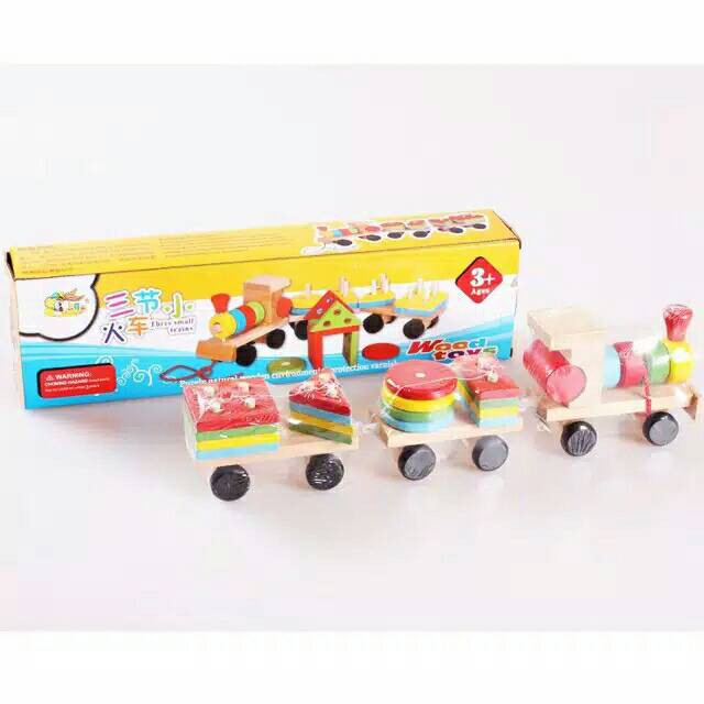 MAINAN KAYU KERETA GEOMETRI / KERETA BALOK KAYU