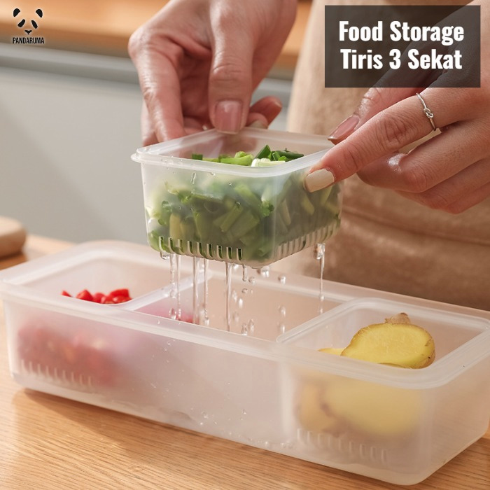 Food Storage Tiris Sekat 3 / Tempat Penyimpanan Bawang Food Container Toples Makanan Premium Tebal Tirisan Box Keranjang Saringan Sayuran Buah Multifungsi
