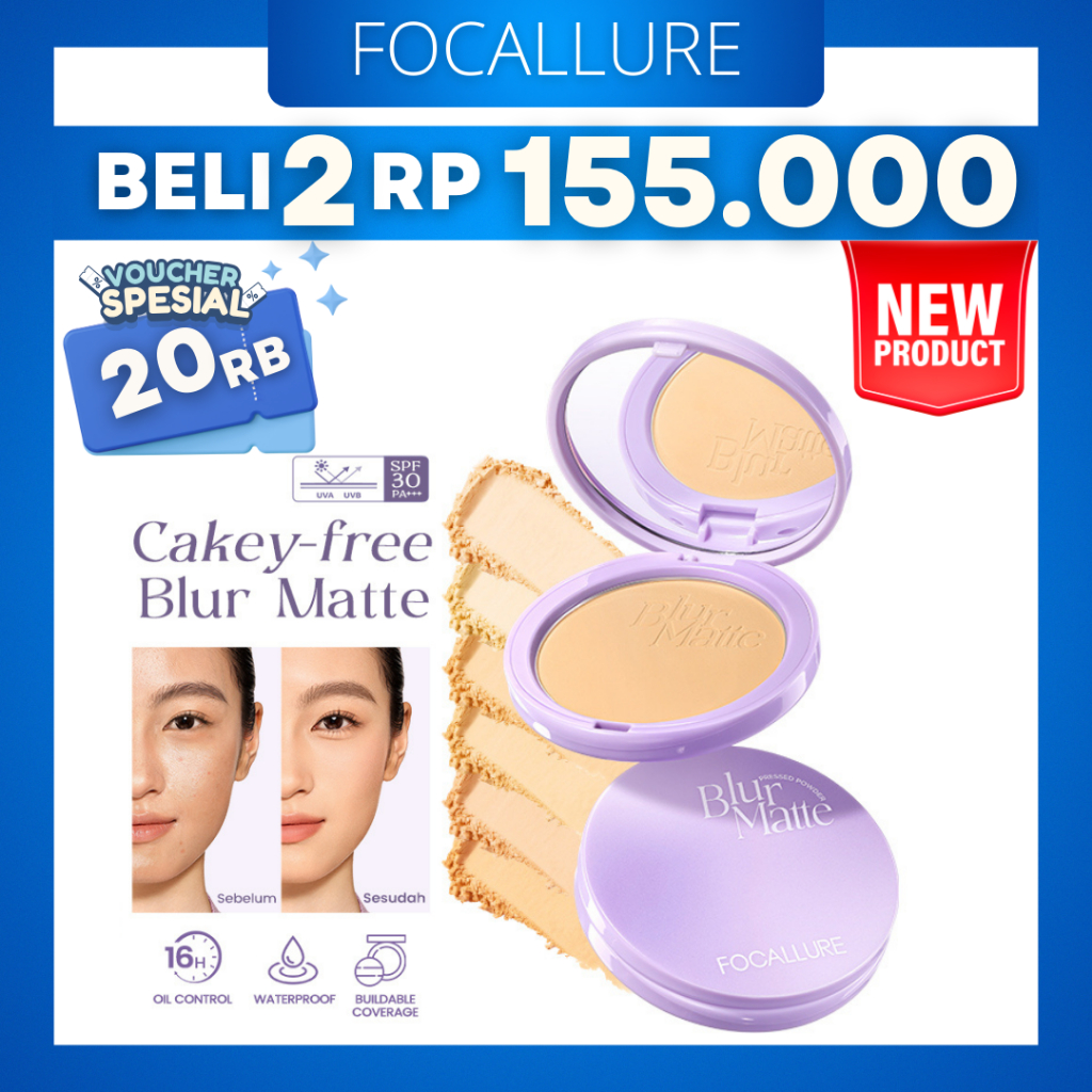 [ BARU ] FOCALLURE Waterproof Bedak Padat SPF30 PA+++ Cakey Free Blur Matte Compact Oil Control Setting Powder Buildable Coverage FA-F72