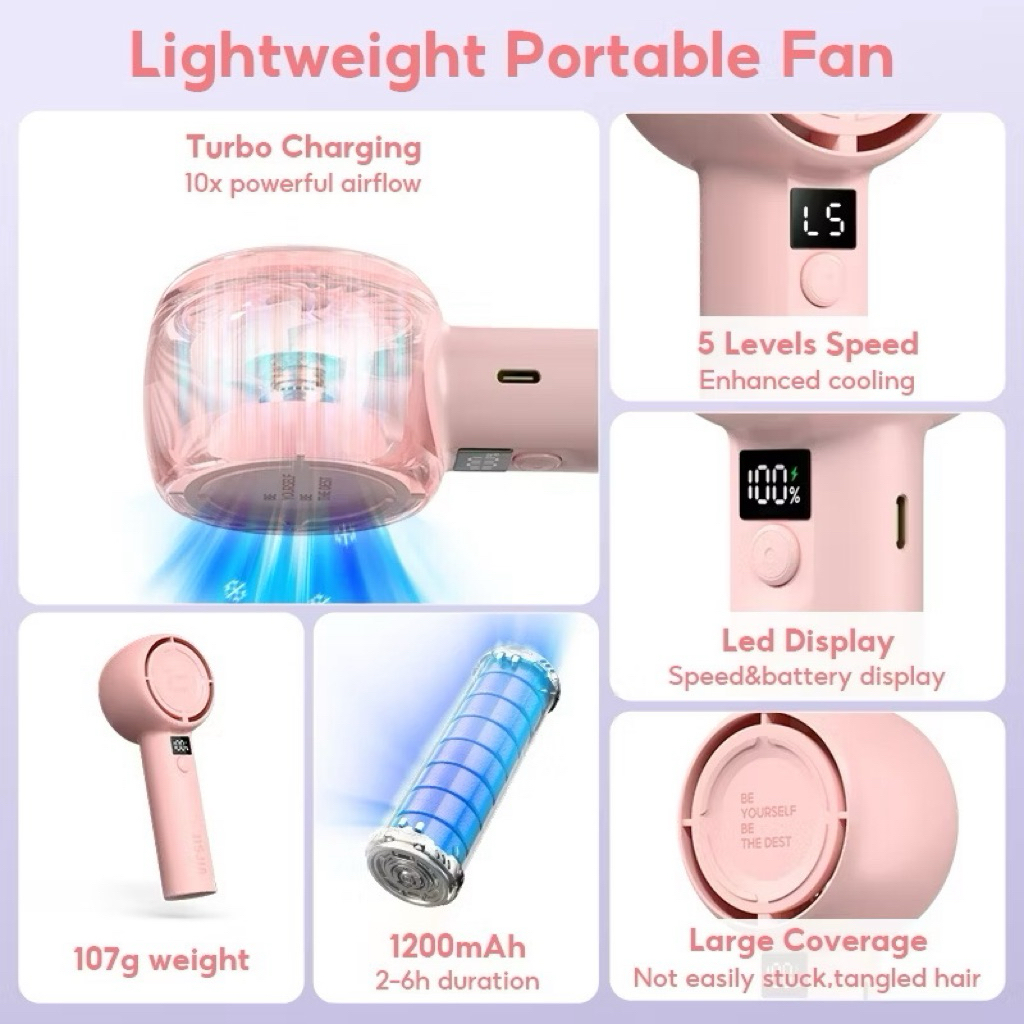 JISJIA Kipas 100 Gear Mini LED Kipas Turbo Angin Strong Wind Wind Angin Tampilan Digital Kipas