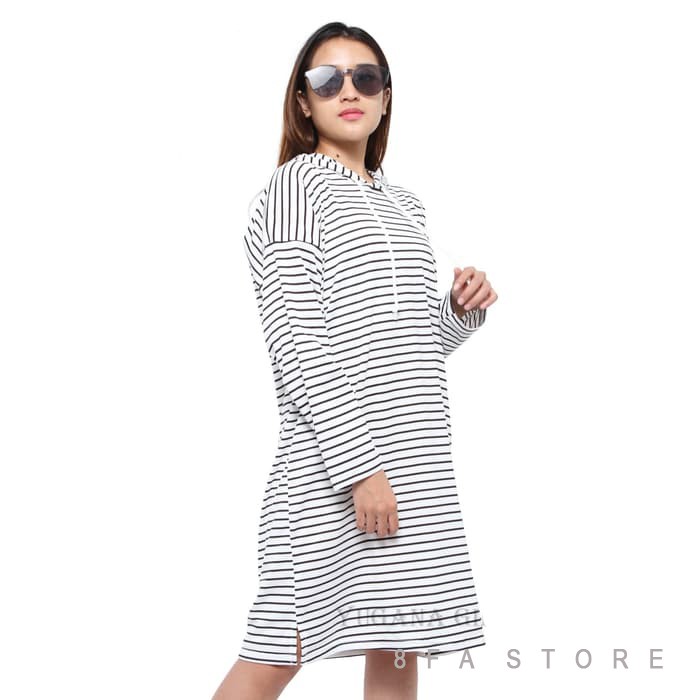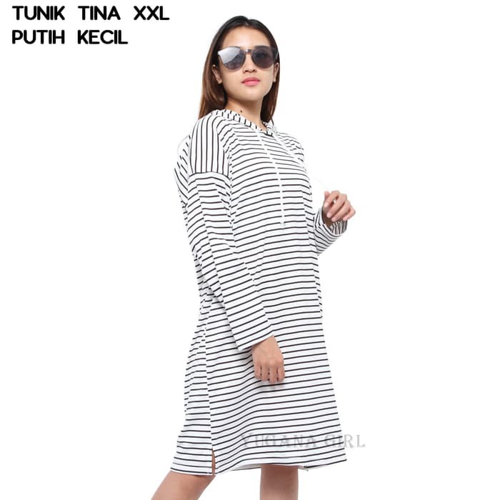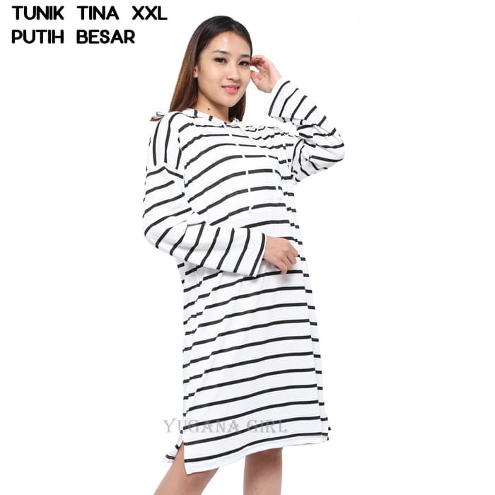 Baju Tunik Putih Motif Garis Jumbo Model Tunic Remaja Kekinian Fit XXL / 8Fa Store