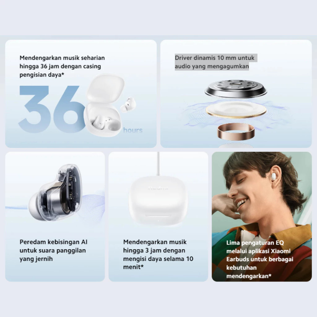 Redmi Buds 6 Play TWS Bluetooth 5.4 Baterai 36 Jam