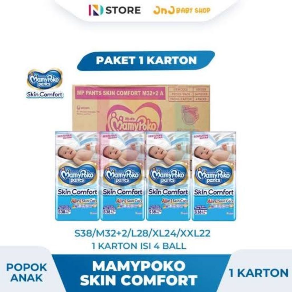 Mamypoko Skin Comfort S38 / M32+2 / L28 (Kemasan dus - 4 ball)