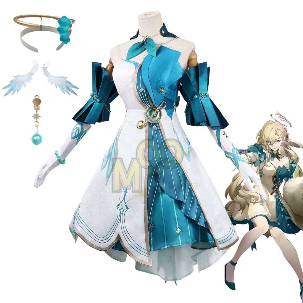 Honkai: Star Rail Robin Derivative clothing Robin cosplay costume Sha Kin style costume and wig robin cyan costume Role playing costumes for games
