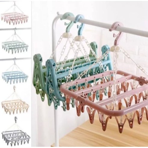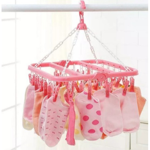 Gantungan Baju 32 Clip 16 Pin Jemuran Baju Kaos Kaki Serbaguna Plastik