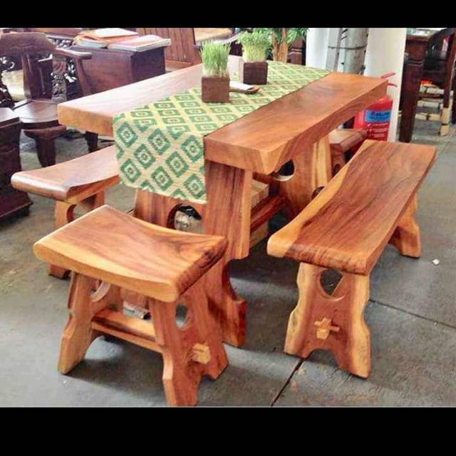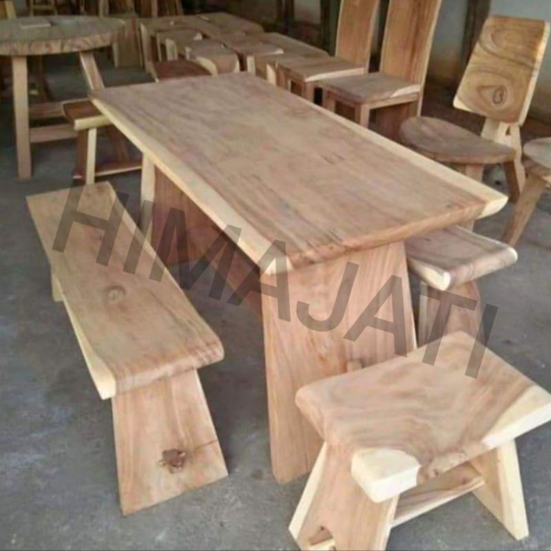 Meja makan resto cafe kayu utuh solid Dijamin Awet (Unfinished)