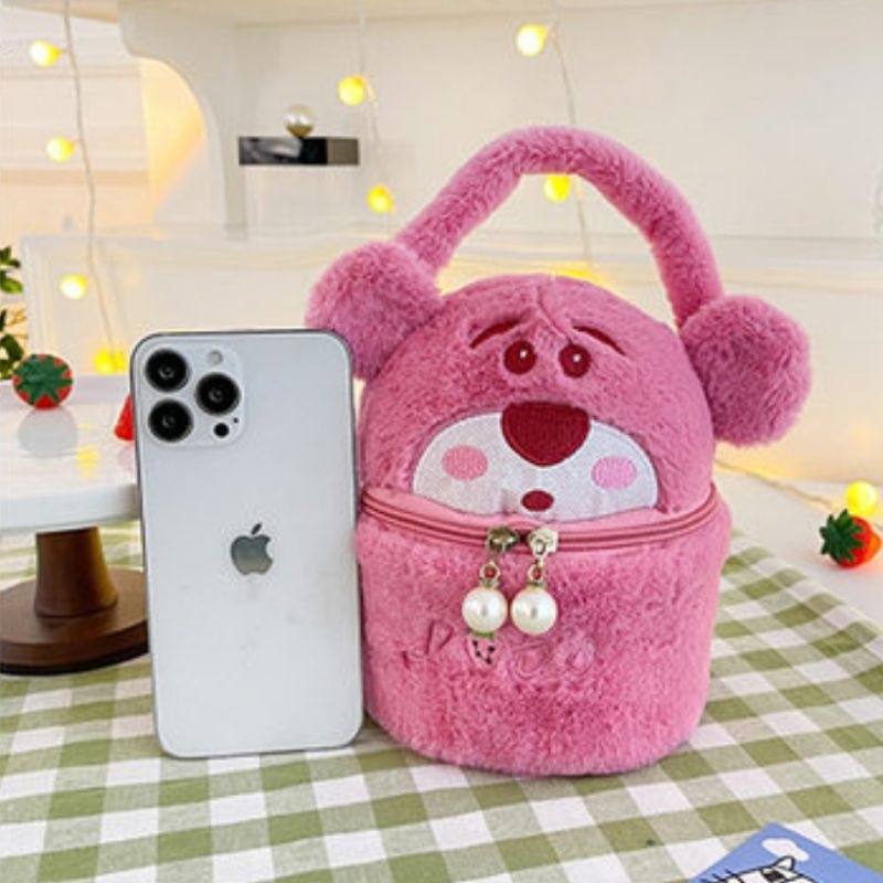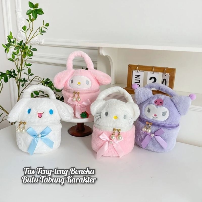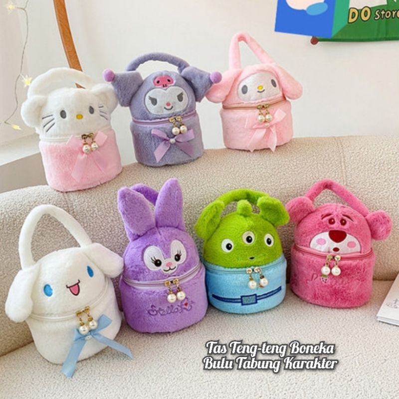 Tas Teng-teng Bulu Tabung Karakter Tas Boneka Tas Tangan