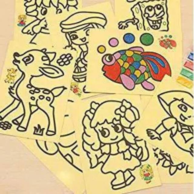 Kertas Mewarnai Jumbo Lukisan Pasir Besar Warna Sand Painting Kecil Mainan Anak Edukasi Diasah