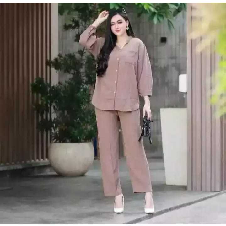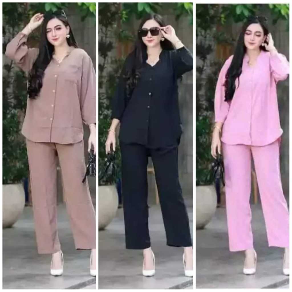 Baju setelan wanita terbaru/ Amanda One Set Premium | setelan Amanda / one set amanda jumbo / Amanda one set jumbo / One set amanda / Setelan Crinkle Airflow