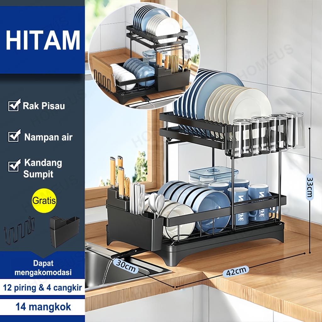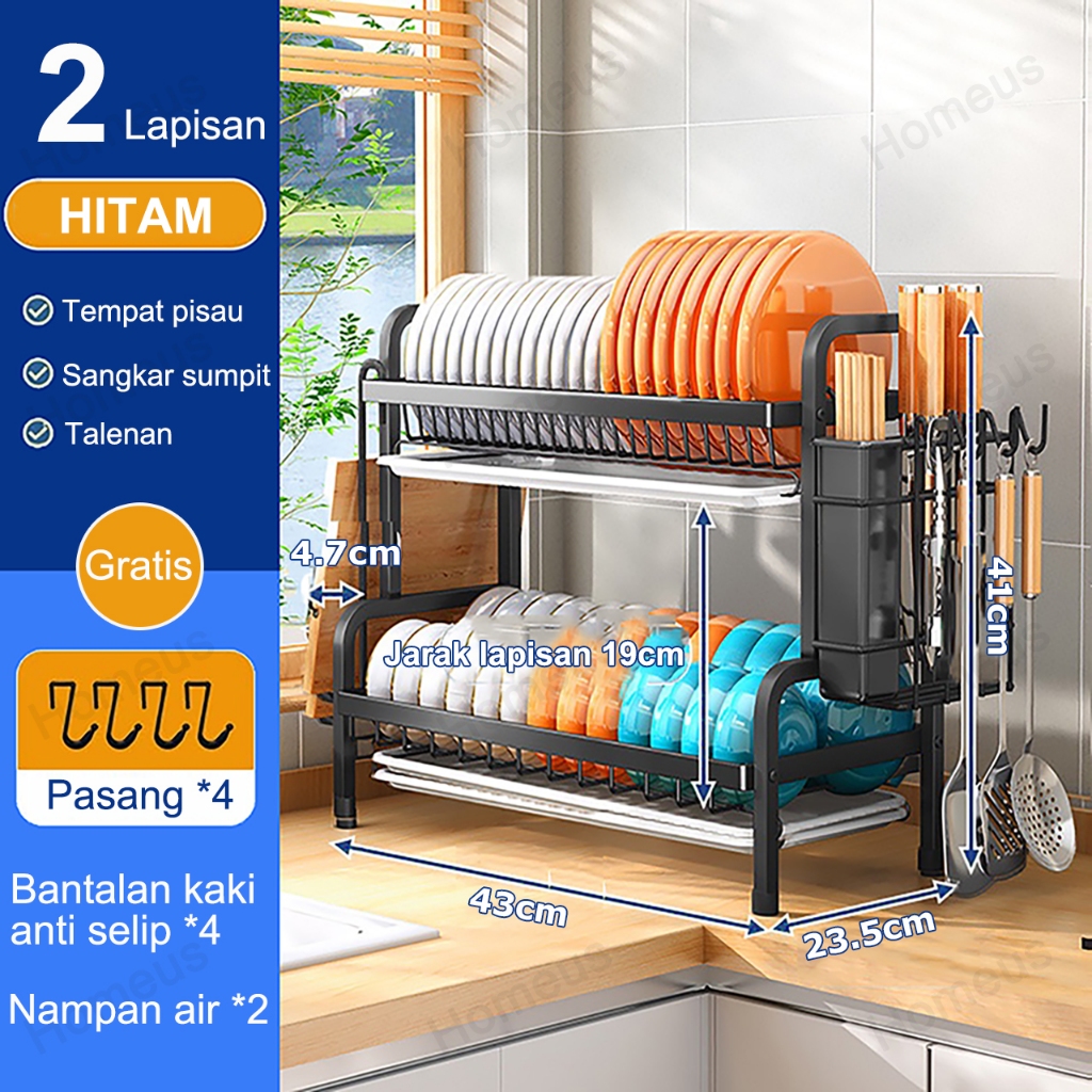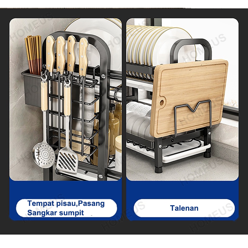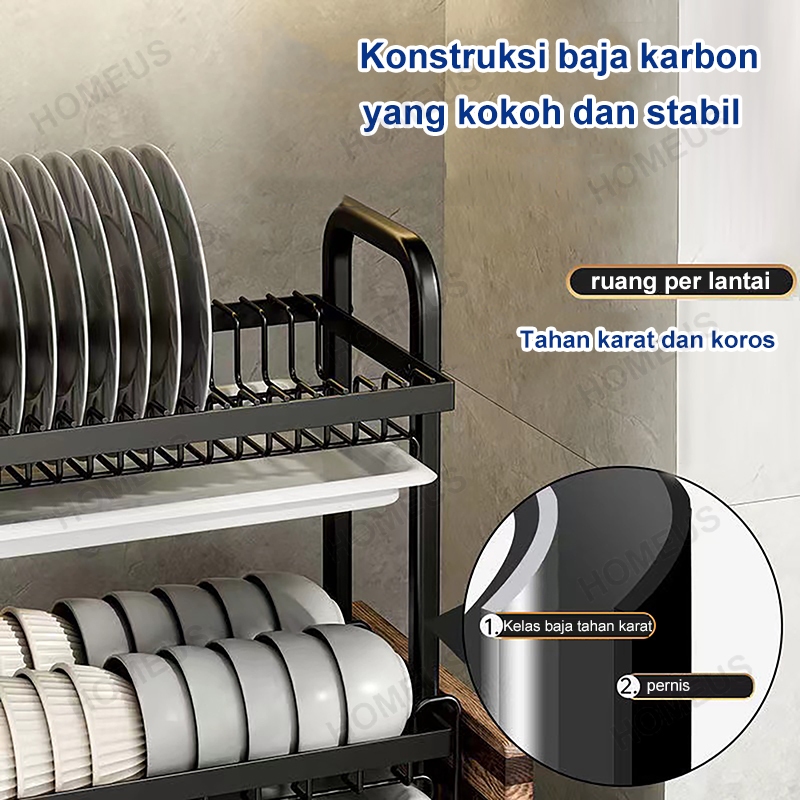 Homeus Rak Piring Rak Cuci Piring Penyimpanan Dapur Stainless Steel Muat Mangkuk Dan Piring