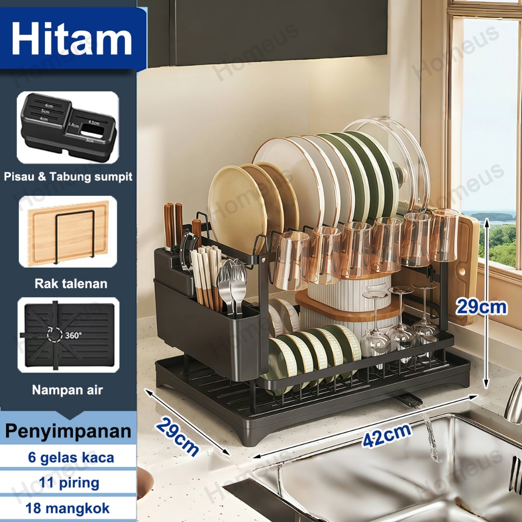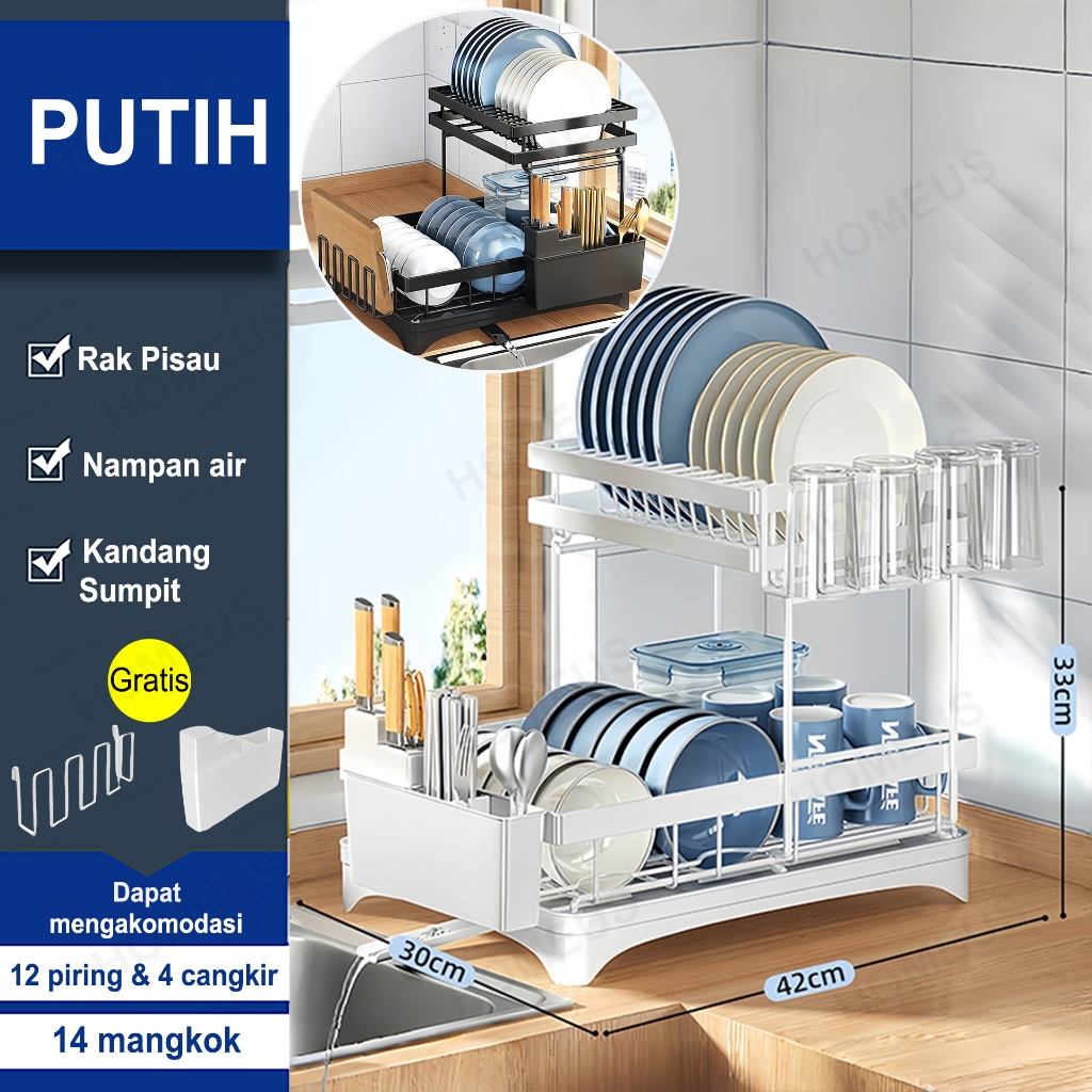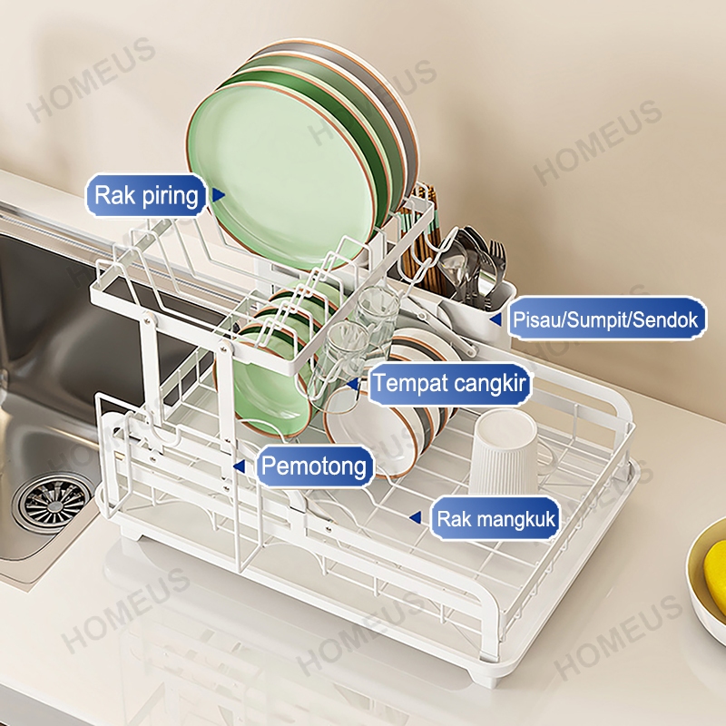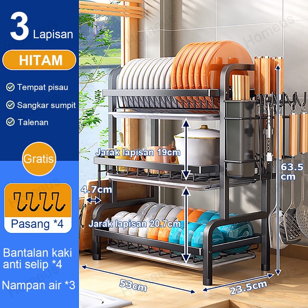 Homeus Rak Piring Rak Cuci Piring Penyimpanan Dapur Stainless Steel Muat Mangkuk Dan Piring