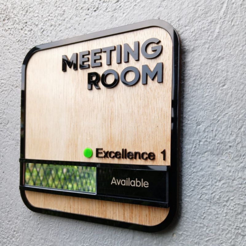 sign meeting room kombinasi kayu akrilik sliding