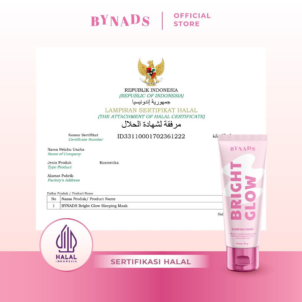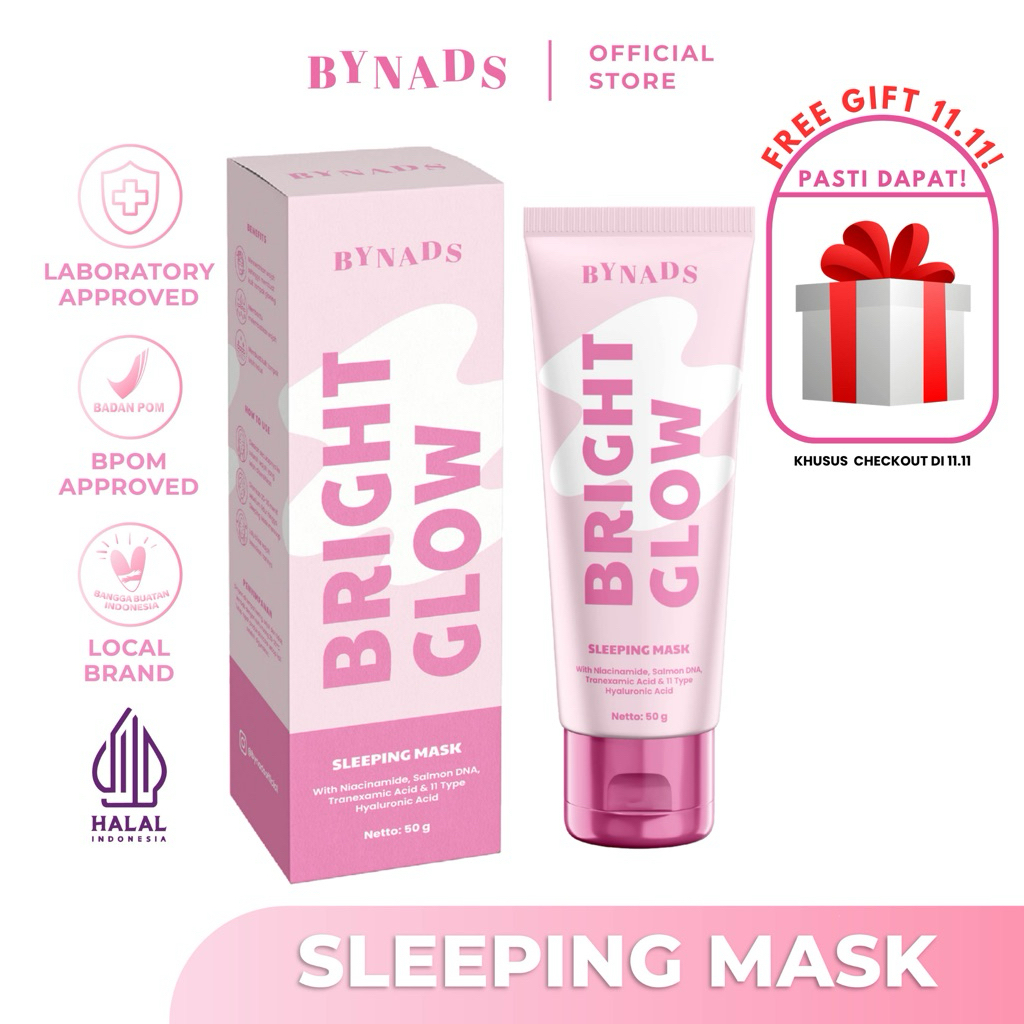 [OFFICIAL] Bynads Bright Glow Sleeping Mask with 4% Niacinamide 3in1 SleepingMask Moisturizer Wash Off Mask Reformulasi Sleeping Mask Salmon DNA Bynads