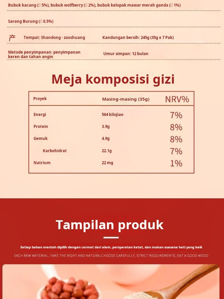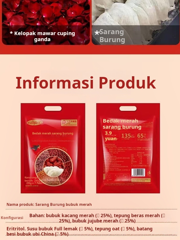 Serbuk Lima Merah Sarang Burung Walet (Kemasan Terpisah) / Nasi Merah / Goji Berry / Oat / Kacang Tanah / Kurma Merah / Umbi Yamn / Ubi Jalar