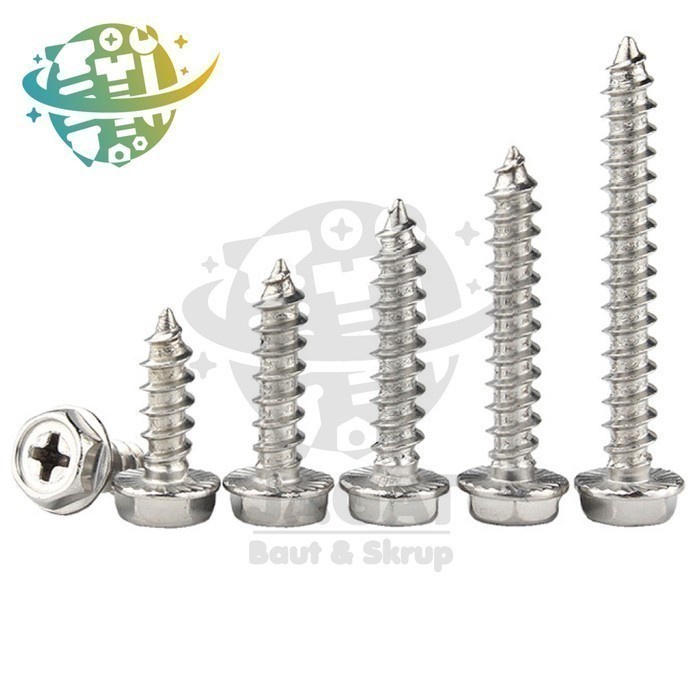 Skrup M5x12 stainless 2 kunci kepala Hex Screw Tapping S304 Sekrup Hex Body Motor Dua Kunci