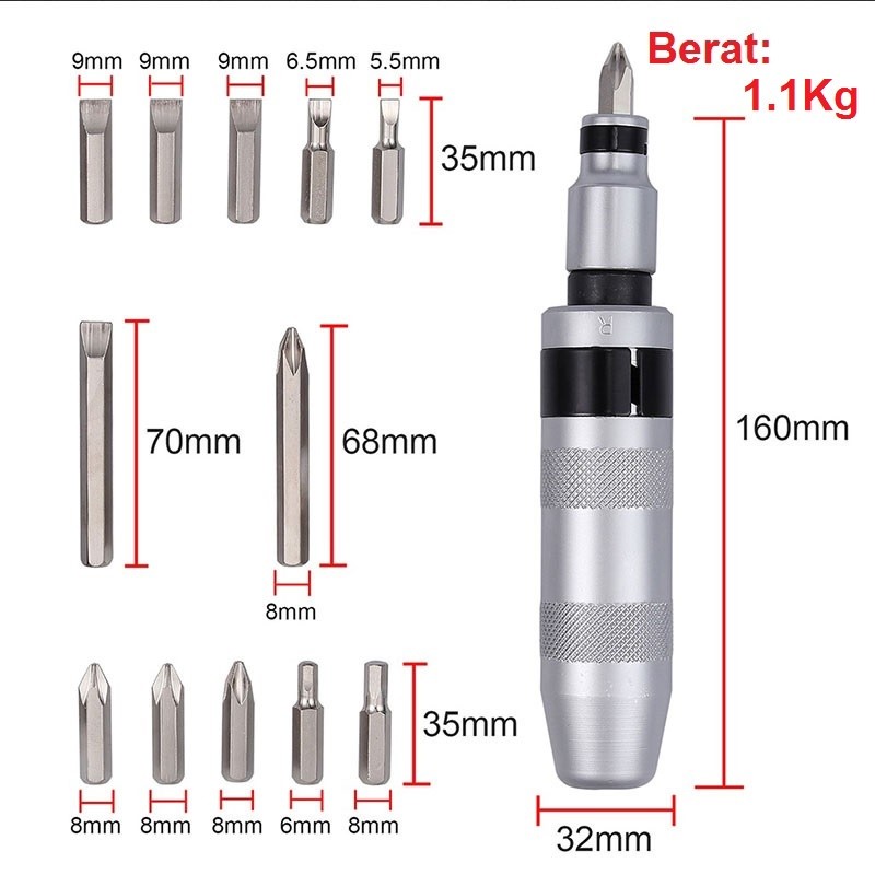 Obeng Ketok Set 13 Pcs Obeng Getok Putar Set 13 Pcs Paket Pengentrikan Screw Driver Dorong Tumpukan - Keluarkan Baut Rusak dan Rusted dengan Mudah