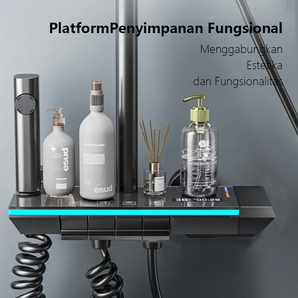 GUANJIE - shower kamar mandi satu set + keran shower + set shower bathtub stainless steel - set batang shower air panas dan dingin - paket mandi LED